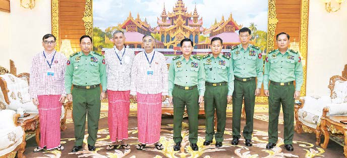 နိုင်ငံတော်စီမံအုပ်ချုပ်ရေးကောင်စီဥက္ကဋ္ဌ တပ်မတော်ကာကွယ်ရေးဦးစီးချုပ် ဗိုလ်ချုပ်မှူးကြီး မင်းအောင်လှိုင်သည် မွန်ပြည်သစ်ပါတီ (NMSP) မှ ဒုတိယဥက္ကဋ္ဌ နိုင်အောင်မင်း ဦးဆောင်သည့် ငြိမ်းချမ်းရေးကိုယ်စားလှယ်အဖွဲ့အား ယနေ့နံနက်ပိုင်းတွင် နေပြည်တော်ရှိ ဘုရင့်နောင်ရိပ်သာ ဧည့်ခန်းမဆောင်၌တွေ့ဆုံ၍ ငြိမ်းချမ်းရေးဆိုင်ရာ ကိစ္စရပ်များ ဆွေးနွေးသည်။