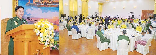 ဦးစွာ နိုင်ငံတော်စီမံအုပ်ချုပ်ရေးကောင်စီဥက္ကဋ္ဌ၊ တပ်မတော်ကာကွယ်ရေးဦးစီးချုပ် ဗိုလ်ချုပ်မှူးကြီးမင်းအောင်လှိုင်က ဂုဏ်ပြုအမှာစကားပြောကြားရာတွင် ကမ္ဘာတစ်ဝှမ်းလုံးကို ခြိမ်းခြောက်ခဲ့သည့် ကိုဗစ်-၁၉ ကပ်ရောဂါနှင့်အခြားသော အနှောင့်အယှက်အခက်အခဲမျိုးစုံကြားမှ တပ်မတော်၏အစဉ်အလာ (၁၂)ရပ်တွင် ပါဝင်သည့် “အခက်အခဲကို ရင်ဆိုင်ကျော်လွှားနိုင်သည့် ရဲစွမ်းသတ္တိရှိသော တပ်မတော်ဖြစ်သည်” ဟူသည့်အတိုင်း အမိနိုင်ငံတော်အတွက် မဆုတ်မနစ်သော ယုံကြည်ချက်၊ ခံယူချက်များနှင့်ဆုတံဆိပ်များရရှိအောင် စွမ်းဆောင်ပေးခဲ့ကြသည့် စွမ်းဆောင်ချက်များအပေါ် မိမိအနေဖြင့် ဝမ်းမြောက်ဂုဏ်ယူမိပါကြောင်း။