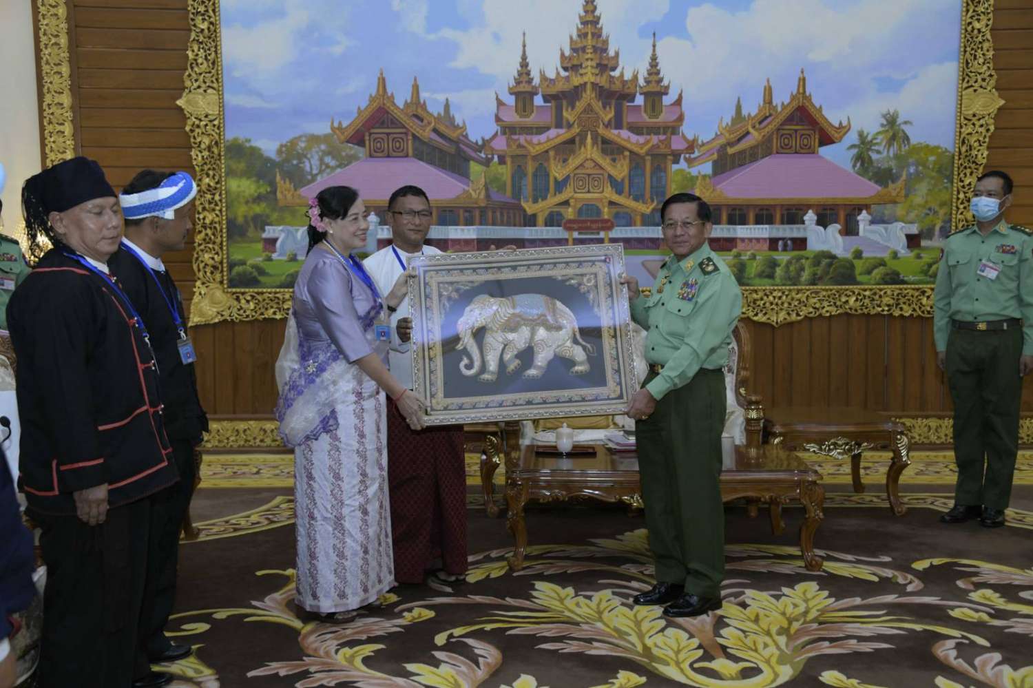 ထိုသို့ တွေ့ဆုံဆွေးနွေးရာတွင် နိုင်ငံတော်စီမံအုပ်ချုပ်ရေးကောင်စီဥက္ကဋ္ဌ တပ်မတော် ကာကွယ်ရေးဦးစီးချုပ်က စစ်မှန်သည့် ပါတီစုံဒီမိုကရေစီစနစ် ကျင့်သုံးရေး၊ ဒီမိုကရေစီနှင့် ဖက်ဒရယ်စနစ်ကိုအခြေခံသည့် ပြည်ထောင်စုတည်ဆောက်ရေးကို နိုင်ငံရေးမျှော်မှန်းချက်အဖြစ် ကြိုးပမ်းဆောင်ရွက်လျက်ရှိသည့် အခြေအနေများ၊ ဒေသနှင့်တိုင်းရင်းသားအကျိုးကို တရားဥပဒေနှင့်အညီ တောင်းဆိုဆွေးနွေးနိုင်ရေးအတွက် တိုင်းရင်းသားကိုယ်စားလှယ်များ အနေဖြင့် နိုင်ငံရေးစင်မြင့်တွင် ယခုထက် ပိုမိုပါဝင်လာရန်လိုအပ်သည့် အခြေအနေများ၊ ထိုသို့အနာဂတ်တွင် တိုင်းရင်းသားများ နိုင်ငံရေးစင်မြင့်ပေါ်သို့ ရောက်ရှိလာစေရေး ကြိုတင်ပြင်ဆင ်ဆောင်ရွက်သင့်သည်များနှင့် နိုင်ငံတော်အစိုးရအနေဖြင့် ကူညီဆောင်ရွက်ပေးနိုင်မည့် အခြေအနေများ၊ လွှတ်တော်အတွင်း တိုင်းရင်းသားများနှင့် လူထုလူတန်းစားအလွှာများကို ကိုယ်စားပြုသူများ ကျယ်ပြန့်စွာပါဝင်လာရေး ဆောင်ရွက်ရာတွင် နိုင်ငံရေးပါတီ အမျိုးအစားအလိုက် ဆောင်ရွက်နိုင်မည့် အခြေအနေများ၊ အမိနိုင်ငံတော်တည်းဟူသော အရိပ်အာဝါသ အောက်တွင် အတူတကွ ပေါင်းစည်းနေထိုင်ကြသူများ ဖြစ်သဖြင့် ပြည်ထောင်စုဖွား တိုင်းရင်းသားများအနေဖြင့် နိုင်ငံတော်ဖွံ့ဖြိုးတိုးတက်ရေးအတွက် ဆိုပါကတစ်သွေးတစ်သားတည်း၊ တစ်စိတ် တစ်ဝမ်းတည်းဖြင့် စိတ်တူကိုယ်တူ သဘောတူညီစွာ အတူတကွလက်တွဲ၍ ကြိုးပမ်းဆောင်ရွက်သွားရန် လိုအပ်သည့် အခြေအနေများ၊ ဖွဲ့စည်းပုံအခြေခံဥပဒေ (၂၀၀၈ ခုနှစ်)နှင့် တစ်နိုင်ငံလုံး ပစ်ခတ်တိုက်ခိုက်မှု ရပ်စဲရေး သဘောတူစာချုပ်(NCA)တို့ကို အခြေခံ၍ ငြိမ်းချမ်းရေးလမ်းကြောင်းကို ဆက်လက်ဖော်ဆောင်သွားမည်ဖြစ်သည့် အခြေအနေများနှင့် ပတ်သက်၍ ရှင်းလင်းဆွေးနွေး ပြောကြားသည်။