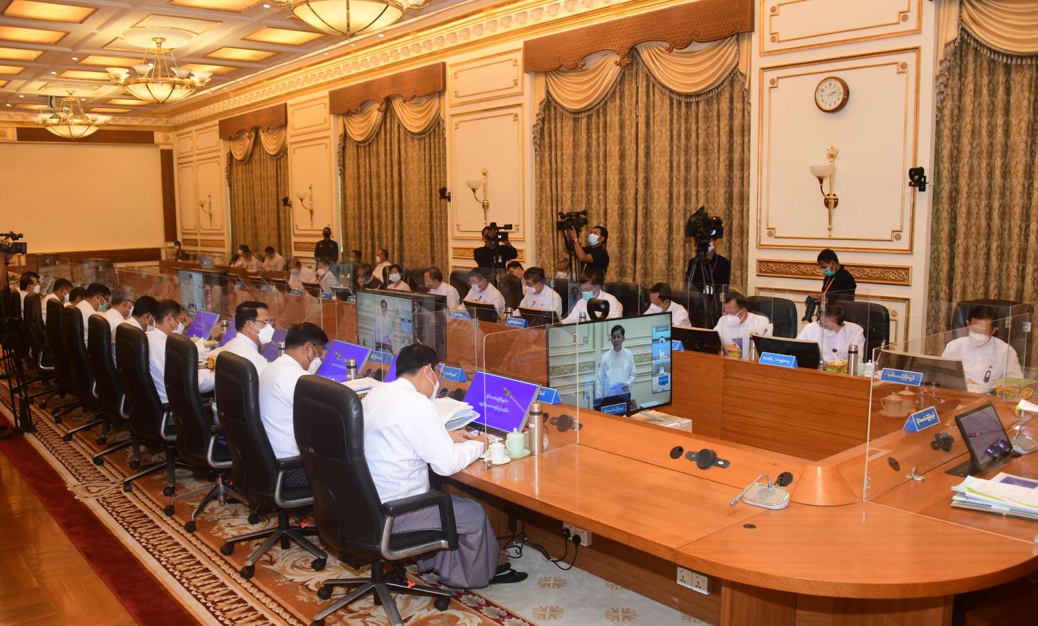 အစည်းအဝေးသို့ အသေးစား၊ အငယ်စားနှင့် အလတ်စား စီးပွားရေးလုပ်ငန်းများ ဖွံ့ဖြိုးတိုးတက်ရေးဗဟိုကော်မတီ ဒုတိယဥက္ကဋ္ဌ၊ နိုင်ငံတော်စီမံအုပ်ချုပ်ရေးကောင်စီ ဒုတိယဥက္ကဋ္ဌ ဒုတိယဝန်ကြီးချုပ် ဒုတိယဗိုလ်ချုပ်မှူးကြီး စိုးဝင်း၊ ဗဟိုကော်မတီဝင်၊ နိုင်ငံတော်စီမံအုပ်ချုပ်ရေးကောင်စီအဖွဲ့ဝင် ဒုတိယဗိုလ်ချုပ်ကြီး မိုးမြင့်ထွန်း၊ ပြည်ထောင်စုဝန်ကြီးများ၊ မြန်မာနိုင်ငံတော်ဗဟိုဘဏ်ဥက္ကဋ္ဌ၊ နေပြည်တော်ကောင်စီဥက္ကဋ္ဌနှင့် ဒုတိယဝန်ကြီးများ၊ မြန်မာနိုင်ငံဘဏ်များအသင်းဥက္ကဋ္ဌ၊ ပြည်ထောင်စုသမ္မတ မြန်မာနိုင်ငံတော် ကုန်သည်များနှင့် စက်မှုလက်မှုလုပ်ငန်းရှင်များအသင်းချုပ် (UMFCCI) ဥက္ကဋ္ဌ၊ မြန်မာနိုင်ငံအင်ဂျင်နီယာအသင်းချုပ်နာယကတို့ တက်ရောက်ကြပြီး တိုင်းဒေသကြီးနှင့် ပြည်နယ်ဝန်ကြီးချုပ်များက Video Conferencing ဖြင့်တက်ရောက်ကြသည်။