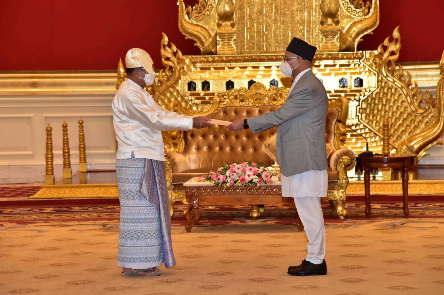 နိုင်ငံ‌တော်စီမံအုပ်ချုပ်ရေးကောင်စီဥက္ကဋ္ဌ နိုင်ငံတော်ဝန်ကြီးချုပ် ဗိုလ်ချုပ်မှူးကြီး မင်းအောင်လှိုင်ထံ မြန်မာနိုင်ငံဆိုင်ရာ နီပေါနိုင်ငံသံအမတ်ကြီး သံအမတ်ခန့်အပ်လွှာပေးအပ်
