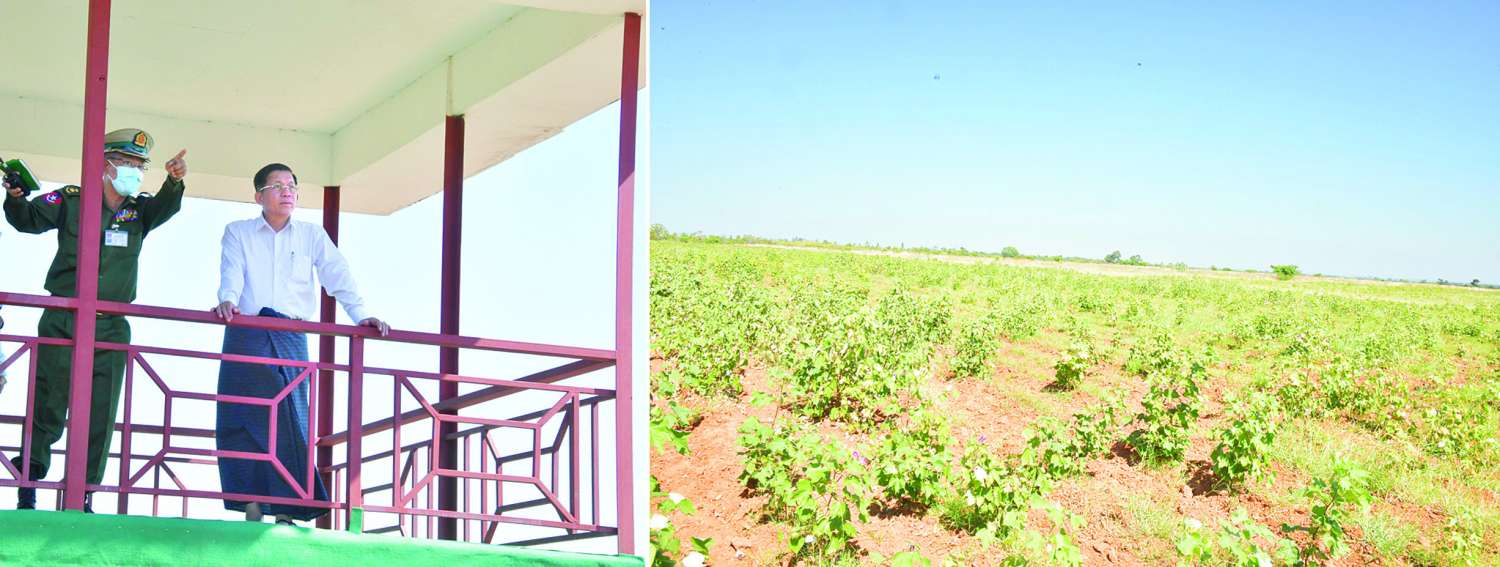 ထို့နောက် နိုင်ငံတော်စီမံအုပ်ချုပ်ရေးကောင်စီဥက္ကဋ္ဌ တပ်မတော်ကာကွယ်ရေးဦးစီးချုပ်နှင့် အဖွဲ့ဝင်များသည် တပ်မတော်ဝါစိုက်ပျိုးရေးတပ်(ပွင့်ဖြူ)အတွင်း ဝါစိုက်ပျိုးထားရှိမှုများနှင့် ဝါဂွမ်းထုတ်လုပ်နေမှု အခြေအနေများကို လိုက်လံကြည့်ရှုစစ်ဆေးကာ တာဝန်ရှိသူများ၏ တင်ပြချက်များအပေါ် လိုအပ်သည်များ မှာကြားခဲ့ကြောင်း သတင်းရရှိသည်။