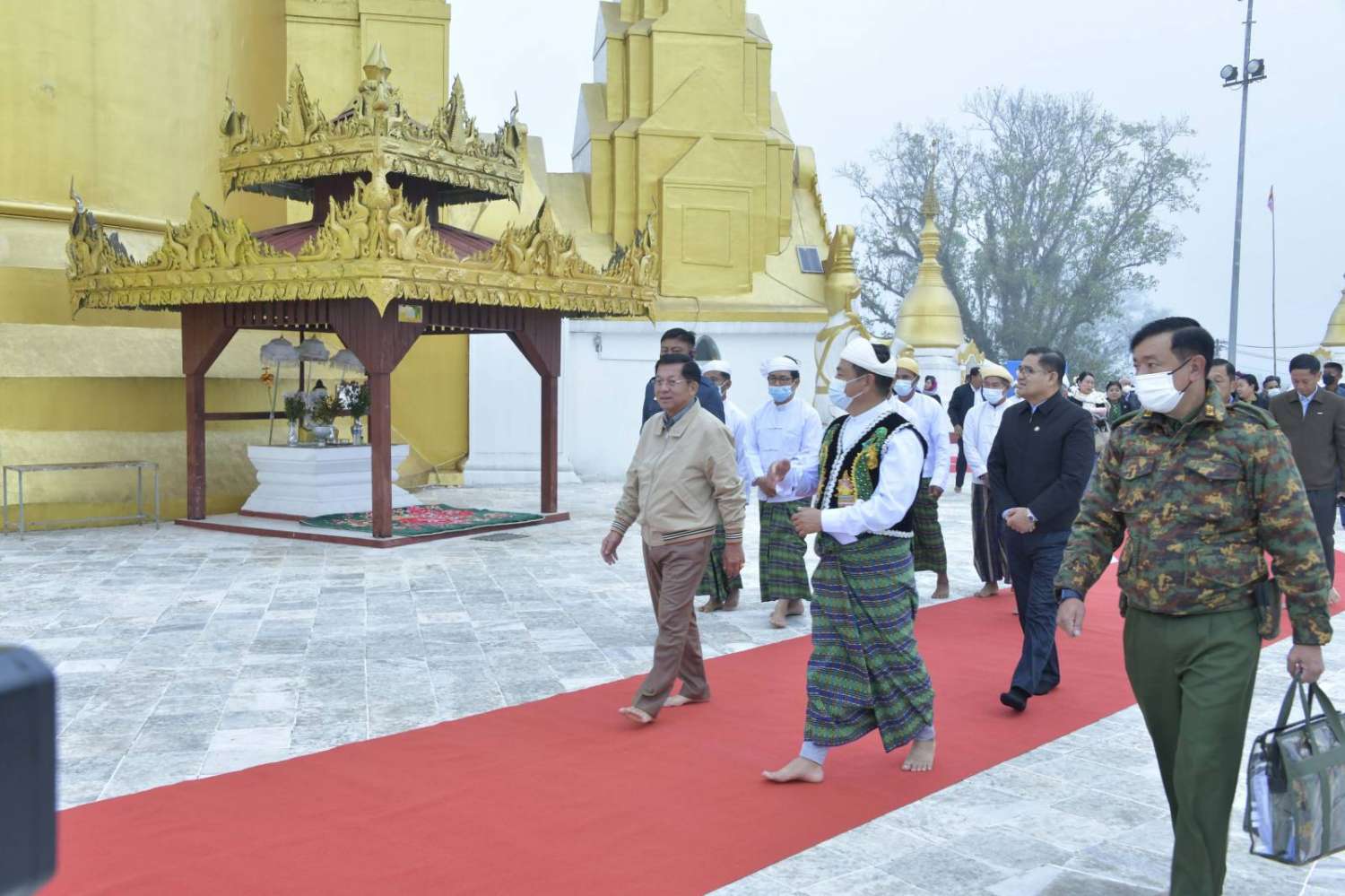 နိုင်ငံတော်စီမံအုပ်ချုပ်ရေးကောင်စီဥက္ကဋ္ဌ နိုင်ငံတော်ဝန်ကြီးချုပ် ဗိုလ်ချုပ်မှူးကြီး မင်းအောင်လှိုင် မချမ်းဘော့မြို့နယ်ရှိ ရှေးဟောင်းသမိုင်းဝင် ကောင်းမှုလုံ စေတီတော်မြတ်ကြီးသို့ သွားရောက်ဖူးမြော်ကြည်ညို၊ ရဝမ်ယဉ်ကျေးမှုပြတိုက်သို့ သွားရောက်ကြည့်ရှုလေ့လာ