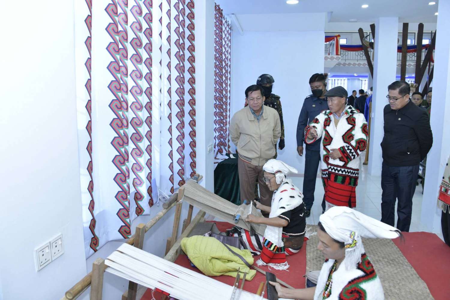 ထို့နောက် နိုင်ငံတော်စီမံအုပ်ချုပ်ရေးကောင်စီဥက္ကဋ္ဌ နိုင်ငံတော်ဝန်ကြီးချုပ်နှင့် အဖွဲ့ဝင်များသည် ကျောက်လက်နက်ကိရိယာပြကွက်၊ ကျောက်ဖြင့်ပြုလုပ်ထားသည့် အသုံးအဆောင် ပစ္စည်းများပြကွက်၊ သစ်သားထည်အိုးခွက်ပန်းကန် အသုံးအဆောင်များ ပြကွက်၊ သစ်သားနှင့် ကြိမ်နှီးရက် ဦးဆောင်းများပြကွက်၊ ရိုးရာတူရိယာပြကွက်၊ ဝါးနှီးရက် အသုံးအဆောင် ပစ္စည်းများပြကွက်၊ ကြိမ်နှီးဖြင့် ရက်လုပ်သော အသုံးအဆောင်ပစ္စည်းများ ပြကွက်၊ ဓါး၊ လှံ၊ ပုဆိန်၊ လေးမြှားလက်နက်များ ပြကွက်၊ ဝါး အသုံးအဆောင်ပစ္စည်းများပြကွက်၊ ရိုးရာ ခရီးဆောင်လွယ်အိတ်များ ပြကွက်၊ ဒေသထွက် တိုင်းရင်းဆေးများပြကွက်၊ ရိုးရာဂျက်ခုတ် အထည်ရက်ကိရိယာများပြကွက်၊ ရဝမ်ရိုးရာ လက်ဝတ်ရတနာများပြကွက်၊ ရဝမ်လူမျိုးများ ဆင်းသက်လာရာပြမြေပုံ၊ နိုင်ငံတော်ခေါင်းဆောင်များနှင့် ပြည်နယ်ယဉ်ကျေးမှု ခေါင်းဆောင်များပြကွက်တို့ကို ပြကွက်တစ်ခုချင်းစီအလိုက် လိုက်လံကြည့်ရှုကြရာ ဦးရယ်ဒမ်းတန်နှင့် တာဝန်ရှိသူများက လိုက်လံရှင်းလင်းပြသကြသည်။