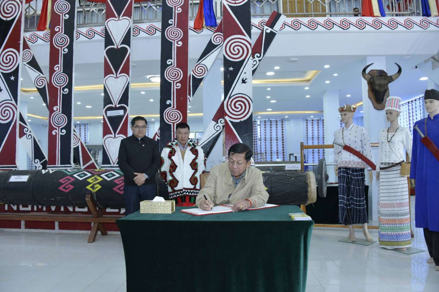 ထို့နောက် နိုင်ငံတော်စီမံအုပ်ချုပ်ရေးကောင်စီဥက္ကဋ္ဌ နိုင်ငံတော်ဝန်ကြီးချုပ်က ရဝမ် ယဉ်ကျေးမှုပြတိုက် ဧည့်သည်တော်မှတ်တမ်းစာအုပ်တွင် အမှတ်တရ လက်မှတ်ရေးထိုးခဲ့ပြီး ရဝမ်ရိုးရာ ရိန်ဒန် (ခေါ်) မနောတိုင်ရှေ့တွင် ရဝမ်တိုင်းရင်းသားများနှင့် အတူတကွ စုပေါင်းမှတ်တမ်းဓာတ်ပုံ ရိုက်ခဲ့ကြကြောင်း သတင်းရရှိသည်။