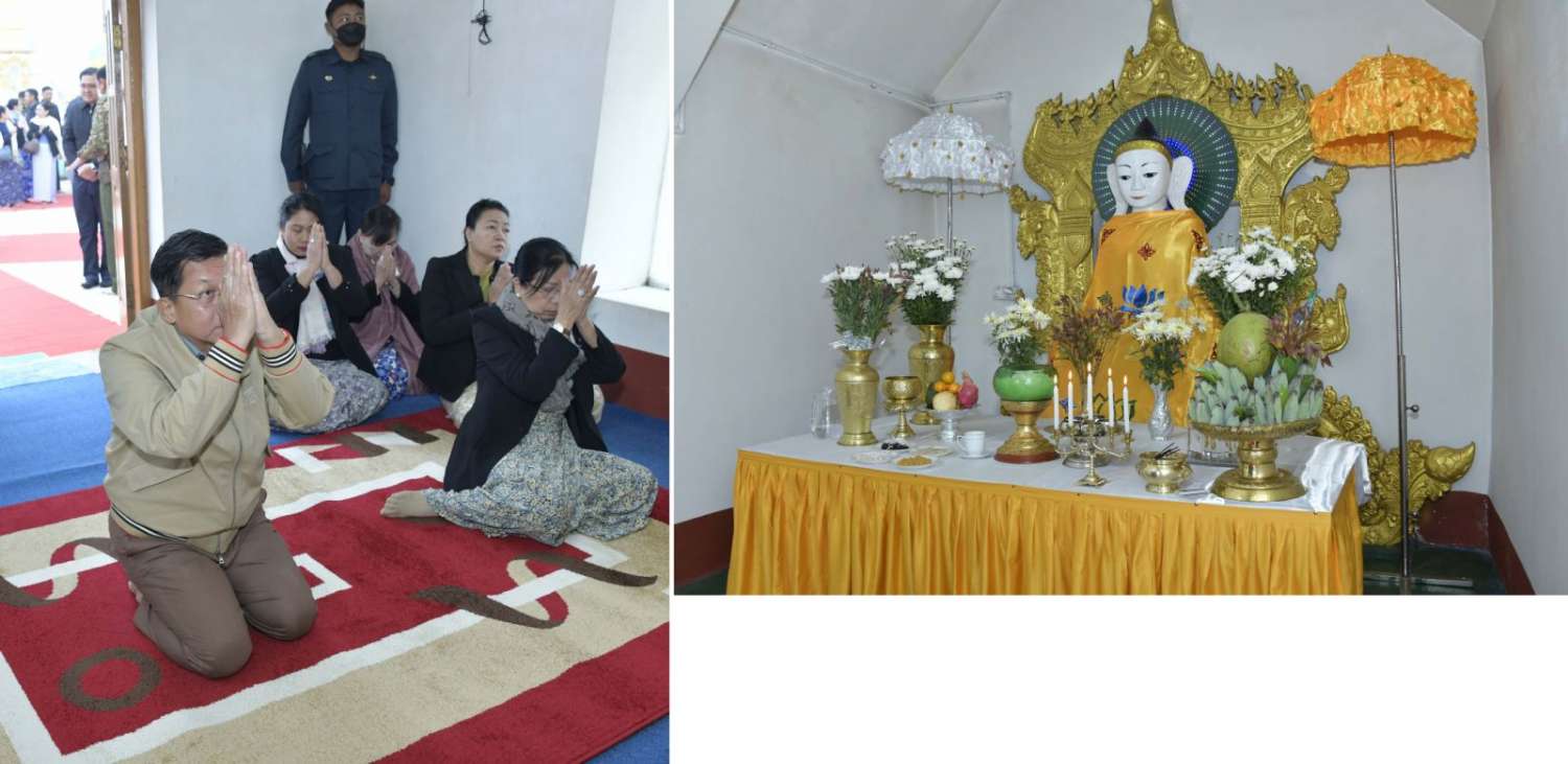 နိုင်ငံတော်စီမံအုပ်ချုပ်ရေးကောင်စီဥက္ကဋ္ဌ နိုင်ငံတော်ဝန်ကြီးချုပ် ဗိုလ်ချုပ်မှူးကြီး မင်းအောင်လှိုင်သည် ဇနီးဒေါ်ကြူကြူလှ၊ ကာကွယ်ရေးဦးစီးချုပ် (ရေ) ဗိုလ်ချုပ်ကြီး မိုးအောင်နှင့်ဇနီး၊ ကာကွယ်ရေးဦးစီးချုပ်(လေ) ဗိုလ်ချုပ်ကြီးထွန်းအောင်နှင့် ဇနီး၊ ကာကွယ်ရေး ဦးစီးချုပ်ရုံးမှ တပ်မတော်အရာရှိကြီးများနှင့်ဇနီးများ၊ မြောက်ပိုင်းတိုင်းစစ်ဌာနချုပ် တိုင်းမှူး ဗိုလ်ချုပ်ကိုကိုမောင်နှင့် တာဝန်ရှိသူများလိုက်ပါ၍ ယနေ့နံနက်ပိုင်းတွင် ကချင်ပြည်နယ်၊ ပူတာအိုခရိုင်၊ မချမ်းဘော့မြို့နယ်၊ ကောင်းမှုလုံကျေးရွာ၊ နမ့်ကျို(မလိခ)မြစ်ကမ်းနံဘေးတွင် တည်ထားကိုးကွယ်သည့် ရှေးဟောင်းသမိုင်းဝင် ကောင်းမှုလုံစေတီတော်မြတ်ကြီးသို့ သွားရောက်ဖူးမြော်ကြည်ညိုသည်။