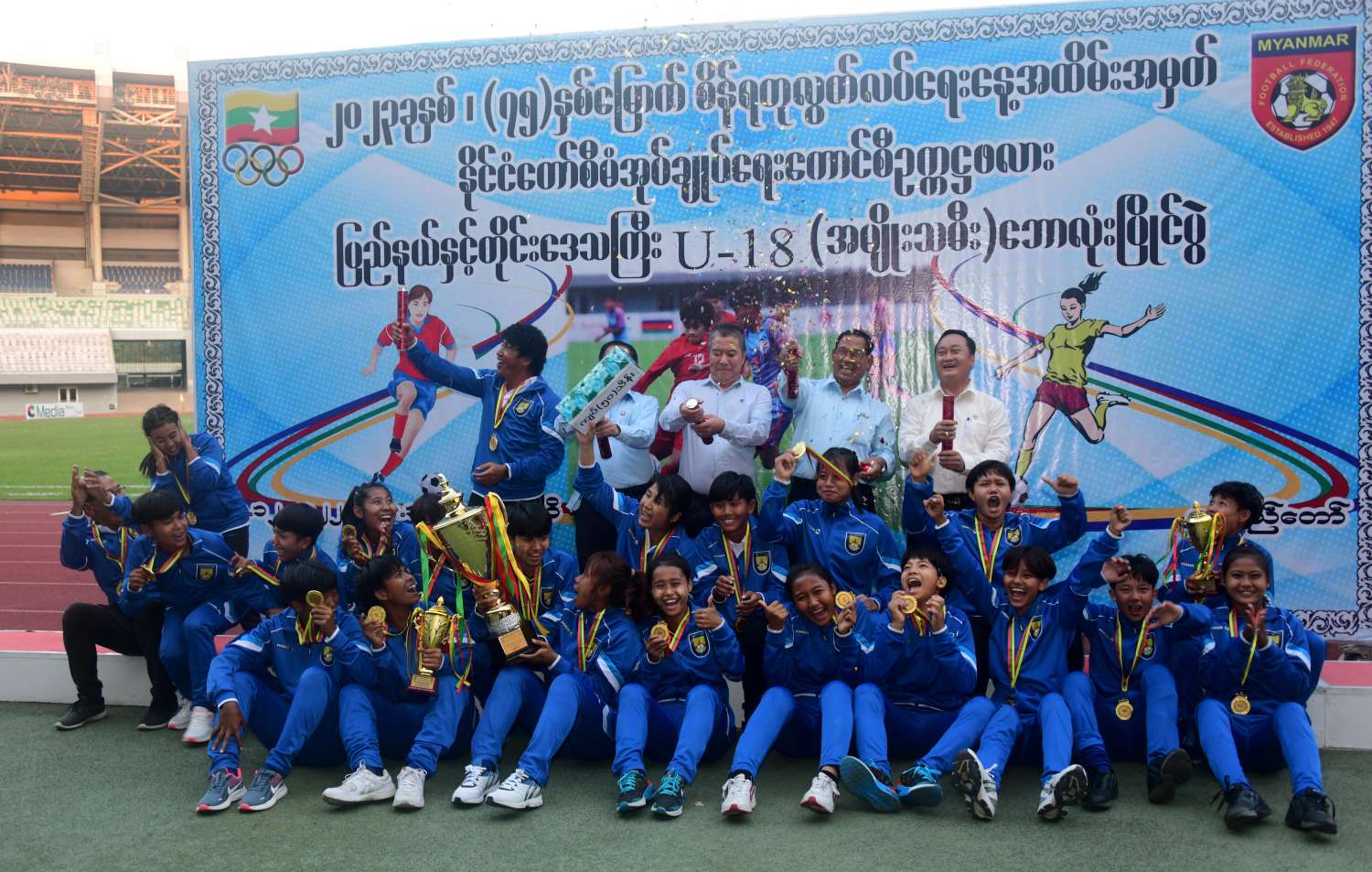 မြန်မာ့ဘောလုံးအားကစားလောကအဆင့်အတန်း တိုးတက်မြင့်မားလာစေရန်နှင့် ပြည်နယ်နှင့် တိုင်းဒေသကြီးများမှ ထူးချွန်ထက်မြက်သည့် မျိုးဆက်သစ် (အမျိုးသမီး) ဘောလုံးအားကစားသမား များစွာပေါ်ထွက်လာစေရန်ရည်ရွယ်၍ အားကစားနှင့်လူငယ်ရေးရာဝန်ကြီးဌာန၊ အားကစားနှင့်ကာယပညာဦးစီးဌာနနှင့် မြန်မာနိုင်ငံဘောလုံးအဖွဲ့ချုပ်တို့ပူးပေါင်း၍ ၂၀၂၃ ခုနှစ် (၇၅)နှစ်မြောက် စိန်ရတုလွတ်လပ်ရေးနေ့အထိမ်းအမှတ်အဖြစ် နိုင်ငံတော်စီမံအုပ်ချုပ်ရေးကောင်စီဥက္ကဋ္ဌဖလား ပြည်နယ်နှင့် တိုင်းဒေသကြီး (အလွတ်တန်းဖိတ်ခေါ်) U - 18 (အမျိုးသမီး) ဘောလုံးပြိုင်ပွဲ ပွဲစဉ်များကို ဒီဇင်ဘာ ၅ ရက် မှ စတင်ကျင်းပခဲ့ခြင်းဖြစ်ပြီး ယနေ့တွင် ဗိုလ်လုပွဲပွဲစဉ်အဖြစ် ရှမ်းပြည်နယ်အသင်းနှင့် မန္တလေးတိုင်းဒေသကြီးအသင်းတို့ ယှဉ်ပြိုင်ကစားခဲ့ခြင်းဖြစ်ကာ မန္တလေးတိုင်းဒေသကြီး အသင်းက အနိုင်ရဗိုလ်စွဲပြီး တံခွန်စိုက်ဒိုင်းဆုကိုရရှိခဲ့ကြောင်း သတင်းရရှိသည်။