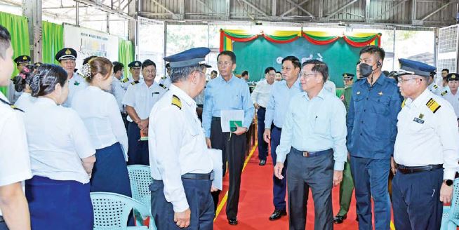 ယင်းနောက် နိုင်ငံတော်စီမံအုပ်ချုပ်ရေးကောင်စီဥက္ကဋ္ဌ နိုင်ငံတော်ဝန်ကြီးချုပ်နှင့် အဖွဲ့ဝင်များသည် မီးရထားစက်ခေါင်းစက်ရုံအတွင်း မီးရထားစက်ခေါင်းများထုတ်လုပ် တပ်ဆင်နေမှု၊ ပြုပြင်ထိန်းသိမ်းနေမှု၊ မီးရထားစက်ခေါင်း အရံပစ္စည်းများ ထုတ်လုပ် ထားရှိမှုအခြေအနေများကို လှည့်လည်ကြည့်ရှုစစ်ဆေးရာ တာဝန်ရှိသူများက လိုက်လံ ရှင်းလင်းတင်ပြကြသည်။