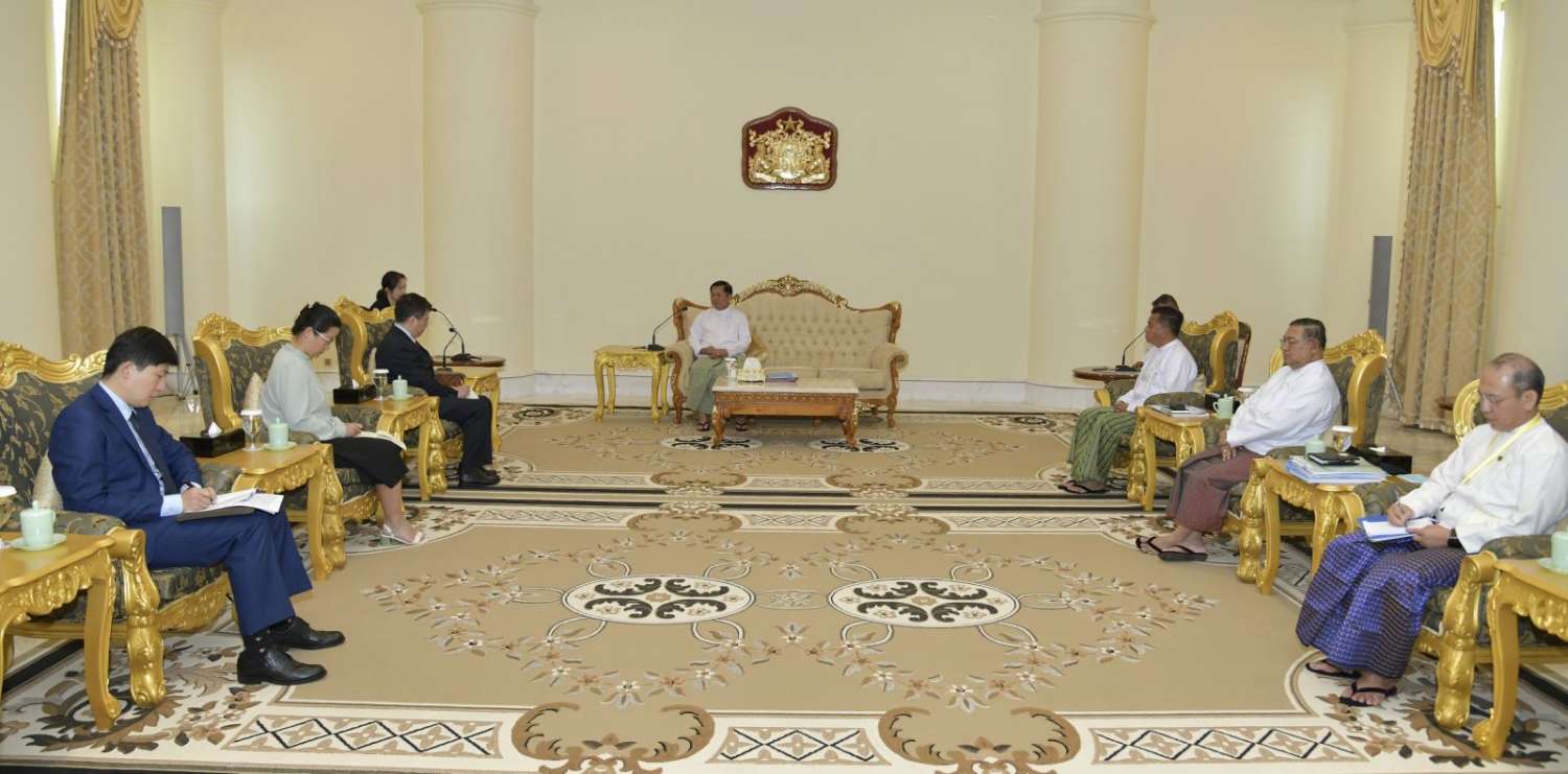 နိုင်ငံတော်စီမံအုပ်ချုပ်ရေးကောင်စီဥက္ကဋ္ဌ နိုင်ငံတော်ဝန်ကြီးချုပ် ဗိုလ်ချုပ်မှူးကြီးမင်းအောင်လှိုင်သည် တရုတ်နိုင်ငံခြားရေးဝန်ကြီးဌာနမှ သံအမတ်ကြီး H.E. Mr. Deng Xijun အား ယနေ့မွန်းလွဲပိုင်းတွင် နေပြည်တော်ရှိ နိုင်ငံတော်စီမံအုပ်ချုပ်ရေးကောင်စီဥက္ကဋ္ဌရုံး၊ ဧည့်ခန်းမ၌ လက်ခံတွေ့ဆုံသည်။