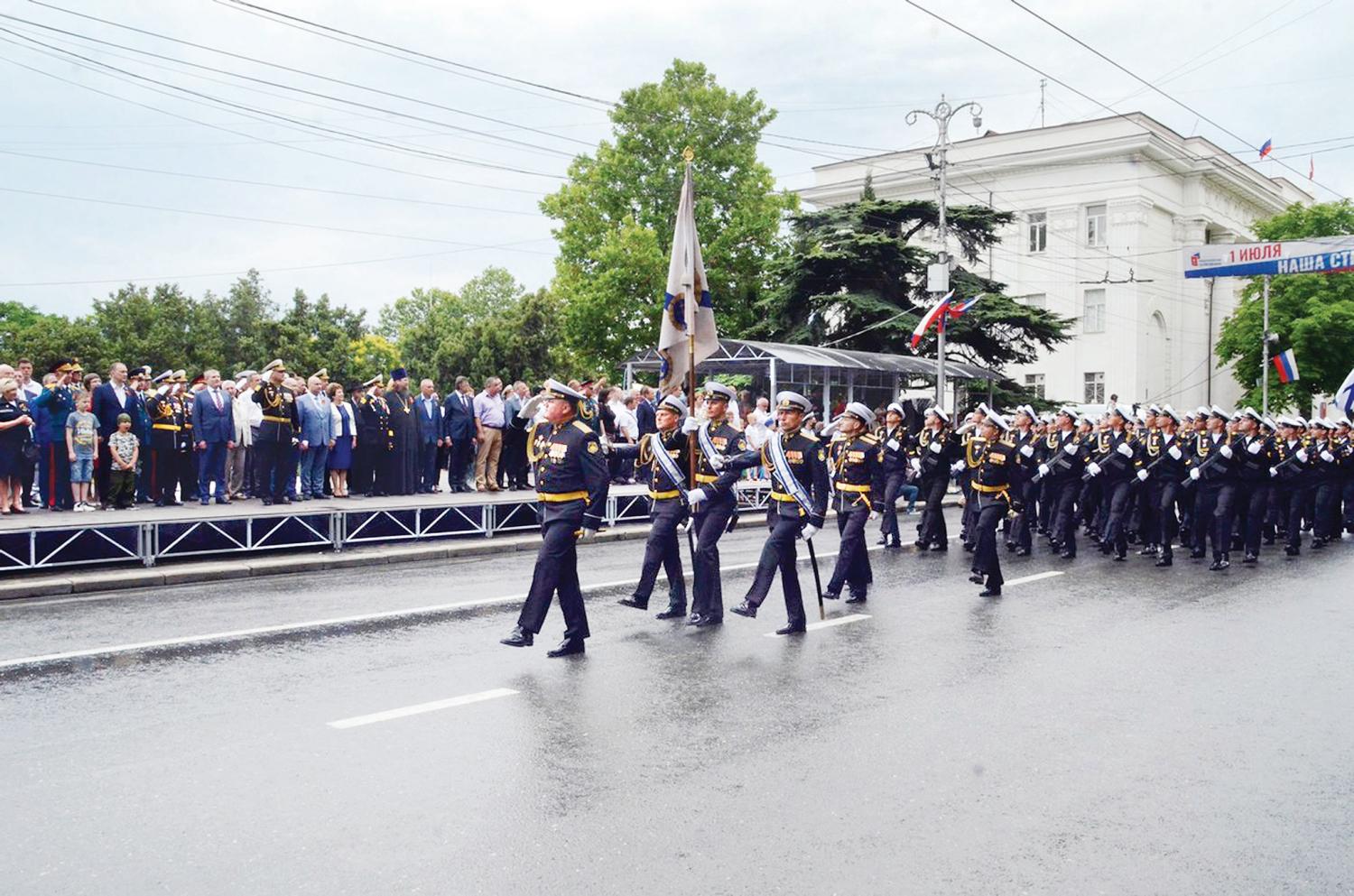 ယင်းနောက် စစ်ရေးပြအစီအစဉ်အတိုင်း စစ်ရေးပြမှူး ရုရှားတပ်မတော် ကြည်းတပ်ဦးစီးချုပ် Colonel General Oleg Solyukov ဦးဆောင်၍ စစ်ကြောင်းတပ်ခွဲများ၊ ယာဉ်ယန္တရား တပ်ခွဲ များ၊ စစ်တီးဝိုင်းတပ်ခွဲများက စစ်ကြောင်းပုံဖြင့် ချီတက်အလေးပြုကြပြီး ရုရှားတပ်မတော် လေမှ လေယာဉ်၊ ရဟတ်ယာဉ်များကလည်း လေယာဉ်ကျွမ်းကျင်မှု အလှပြများဖြင့် ပျံသန်း အလေးပြုကြသည်။ အဆိုပါ စစ်ရေးပြစစ်ကြောင်း၊ တပ်ခွဲများ၌ ပြည်ပနိုင်ငံ ၁၃ နိုင်ငံမှ တပ်ဖွဲ့ဝင် ၁၄၀၀ ခန့်သည်လည်း စစ်ရေးပြတွင် ပါဝင်ဆင်နွှဲခဲ့ကြသည်။