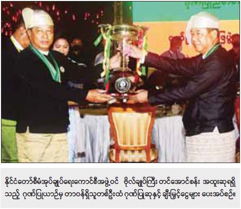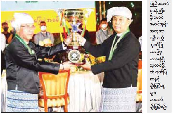 ထို့နောက် ကောင်စီဝင် ဗိုလ်ချုပ်ကြီး မြထွန်းဦးက တိုင်းဒေသကြီးနှင့် ပြည်နယ် ဂုဏ်ပြုယာဉ် တတိယဆုရရှိသည့် မန္တလေးတိုင်းဒေသကြီးနှင့် ပြည်ထောင်စုဝန်ကြီးဌာန ဂုဏ်ပြုယာဉ် တတိယဆု ရရှိသည့် ဆောက်လုပ်ရေးဝန်ကြီးဌာနတို့အတွက် ဂုဏ်ပြုဆုနှင့် ချီးမြှင့်ငွေများကို တာဝန်ရှိသူများထံ ပေးအပ်ချီးမြှင့်သည်။