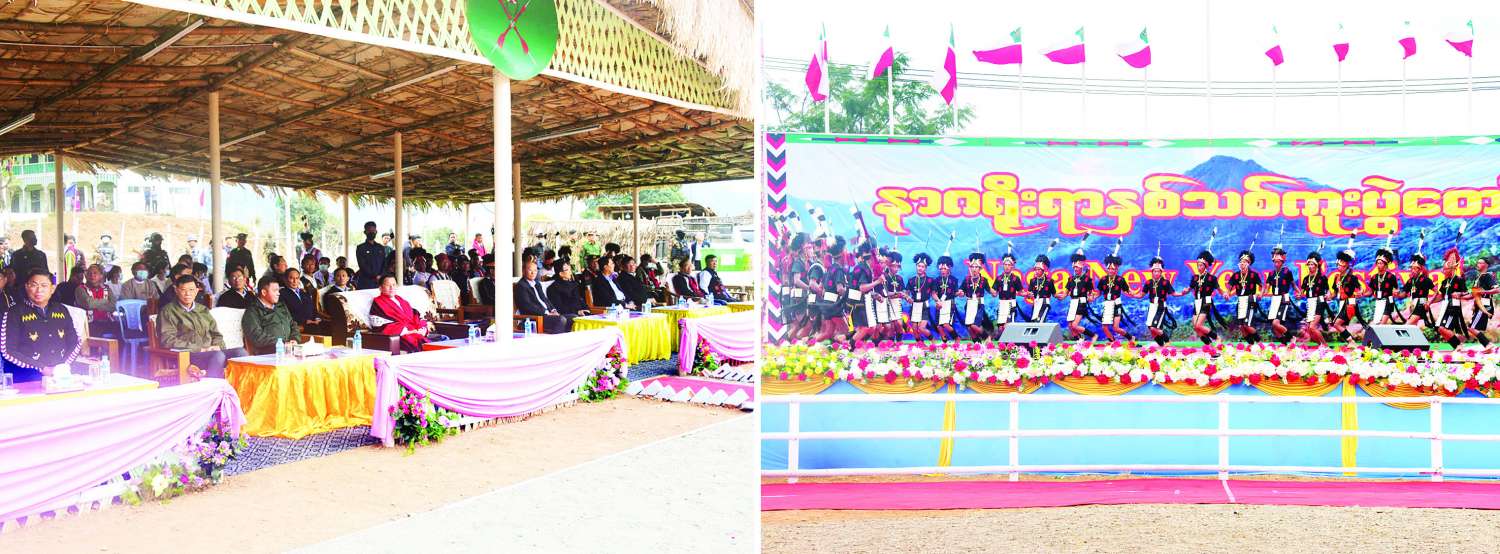 ထို့နောက် နိုင်ငံတော်စီမံအုပ်ချုပ်ရေးကောင်စီဥက္ကဋ္ဌ နိုင်ငံတော်ဝန်ကြီးချုပ်နှင့် အဖွဲ့ဝင်များသည် နာဂတိုင်းရင်းသူ၊ တိုင်းရင်းသားများက ခမ်ညူငမ်မျိုးနွယ်စု အက၊ လိုင်းနောင်မျိုးနွယ်စု အက၊ မကျန်ပေါင်းညွှမ်မျိုးနွယ်စု အက၊ ကွန်ညှပ်မျိုးနွယ်စု အက၊ ဂုဏ်ဝမ်ပုံညိုမျိုးနွယ်စု အက၊ ပြည်ထောင်စု၏ ထာဝရအလှများ သီချင်းစသည်တို့ဖြင့် သီဆိုကပြဖျော်ဖြေမှုများကို ကြည့်ရှုအားပေးခဲ့ပြီး တည်ခင်းဧည့်ခံထားသည့် ရိုးရာအစားအစာများကို သုံးဆောင်ကြသည်။