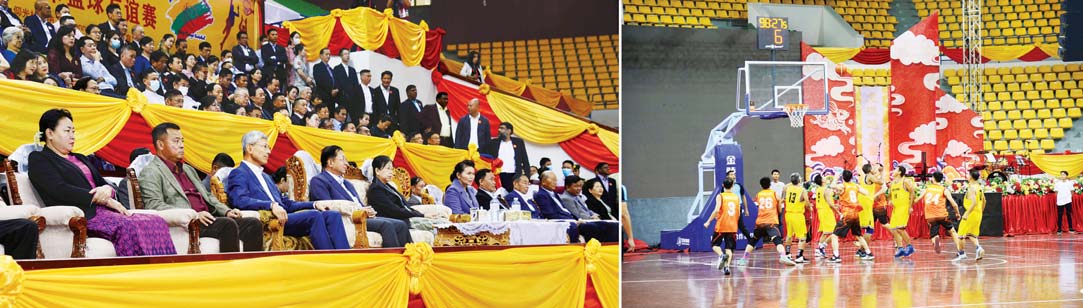 ယင်းနောက် ချစ်ကြည်ရေးဘတ်စကက်ဘော ပြိုင်ပွဲအဖြစ် မြန်မာနိုင်ငံဆိုင်ရာ တရုတ်ပြည်သူ့ သမ္မတနိုင်ငံသံရုံးအသင်းနှင့် လူငယ်ဘတ်စကက်ဘောအသင်းတို့က ပထမပွဲစဉ်အဖြစ်လည်းကောင်း၊ ဒုတိယပွဲစဉ်အဖြစ် မြန်မာနိုင်ငံဆိုင်ရာ တရုတ် ပြည်သူ့သမ္မတနိုင်ငံ သံရုံးအသင်းနှင့် မြန်မာနိုင်ငံ ဘတ်စကက်ဘောအားကစားသမား ဟောင်းကြီးများအသင်းတို့က ဒုတိယပွဲစဉ်အဖြစ်လည်းကောင်း အသီးသီးယှဉ်ပြိုင်ကစားကြရာ နိုင်ငံတော်စီမံအုပ်ချုပ်ရေးကောင်စီဥက္ကဋ္ဌ နိုင်ငံတော်ဝန်ကြီးချုပ်နှင့်ဇနီး၊ အခမ်းအနား တက်ရောက်လာကြသူများက ကြည့်ရှုအားပေးကြသည်။