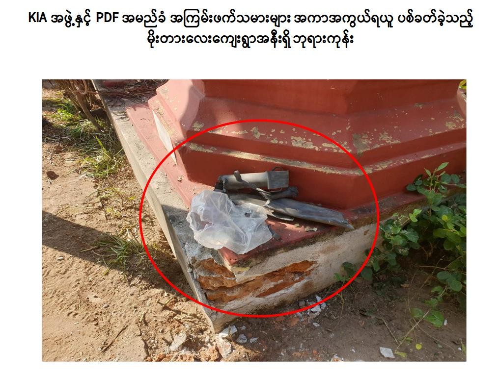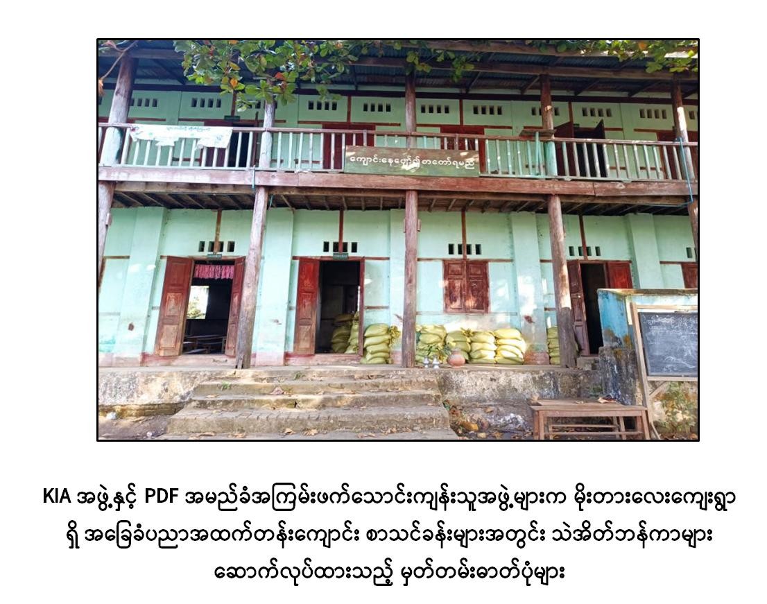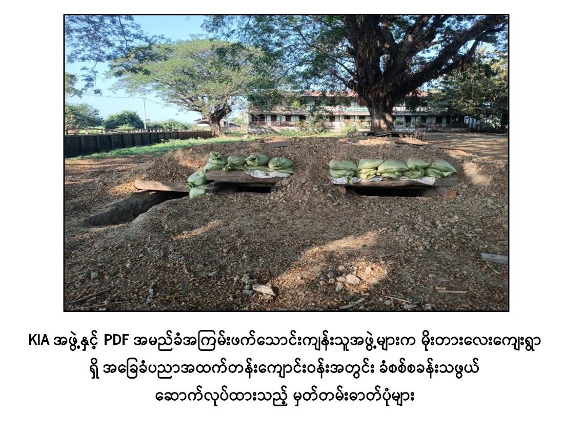 တိုက်ပွဲများပြီးဆုံးပြီးနောက် ကျေးရွာအတွင်း လှည့်လည်စစ်ဆေးခဲ့ရာ KIA အဖွဲ့နှင့် PDF အမည်ခံအကြမ်းဖက်သမားများသည် စာသင်ကျောင်းပရဝုဏ်အတွင်း သဲအိတ်ဘန်ကာများ၊ မြေအောက် အပစ်ကတုတ်ကျင်းများ အခိုင်အမာတည်ဆောက်ခုခံခြင်း၊ စာသင်ခန်းများအတွင်း ပညာသင်ကြားနေသည့်ကလေးများ အသုံးပြုသည့်စာရေးခုံများကို အသုံးပြု၍ သဲအိတ်များဖြင့် ဘန်ကာသဖွယ် အခိုင်အမာ စခန်းတည်ဆောက်ထားခြင်းအပြင် အဓိကခုခံခဲ့သည့် ရွာဦးစေတီတော်ကုန်း တစ်ဝိုက်၌လည်း စေတီပုထိုးများ အကာအကွယ်ဖြင့်လည်းကောင်း၊ သံဃာနှင့်ကပ္ပိယ အိပ်ဆောင်များ၌လည်းကောင်း၊ သဲအိတ်များစီ၍ခုခံခဲ့သည့် အနေအထားတို့ကို တွေ့ရှိခဲ့သဖြင့် အကြမ်းဖက်သမားများ အသုံးပြုခဲ့သည့် ကျောင်းဝန်းအတွင်းနှင့် စာသင်ခန်းများ အတွင်းရှိ ဘန်ကာများနှင့် စေတီကုန်းတစ်ဝိုက်အား လုံခြုံရေးတပ်ဖွဲ့ဝင်များက ကျေးရွာသူ၊ ကျေးရွာသားများနှင့်အတူ ဖယ်ရှားရှင်းလင်းပေးခြင်း၊ စာသင်ကျောင်းပျက်စီးမှုများအား ပြန်လည်ပြုပြင်ပေးခြင်း၊ စာသင်ကျောင်းနှင့် ကျေးရွာတစ်ဝိုက်တို့အား မိုင်းရှင်းလင်းပေးခြင်းများ ဆောင်ရွက်ပေးခဲ့ပြီး စေတီပုထိုးနှင့်သံဃာအိပ်ဆောင်များ ပြန်လည်ပြုပြင်ပေးခြင်းများကို ကျေးရွာသူ၊ ကျေးရွာသားများနှင့်အတူ ဆောင်ရွက်ပေးခဲ့ကာ နယ်မြေဒေသ တည်ငြိမ်အေးချမ်းရေးနှင့်ပတ်သက်၍ လိုအပ်သည်များ ရှင်းလင်းပြောကြားခဲ့သည်။ အဆိုပါ အခိုင်အမာစခန်းများ ပြုလုပ်မှုအတွက် အကြမ်းဖက်အုပ်စုတို့က ရွာသူ/သားများအား အဓမ္မနည်းဖြင့် ခြိမ်းခြောက် ဆောင်ရွက်စေခဲ့ကြောင်း ကိုလည်း သိရှိရသည်။