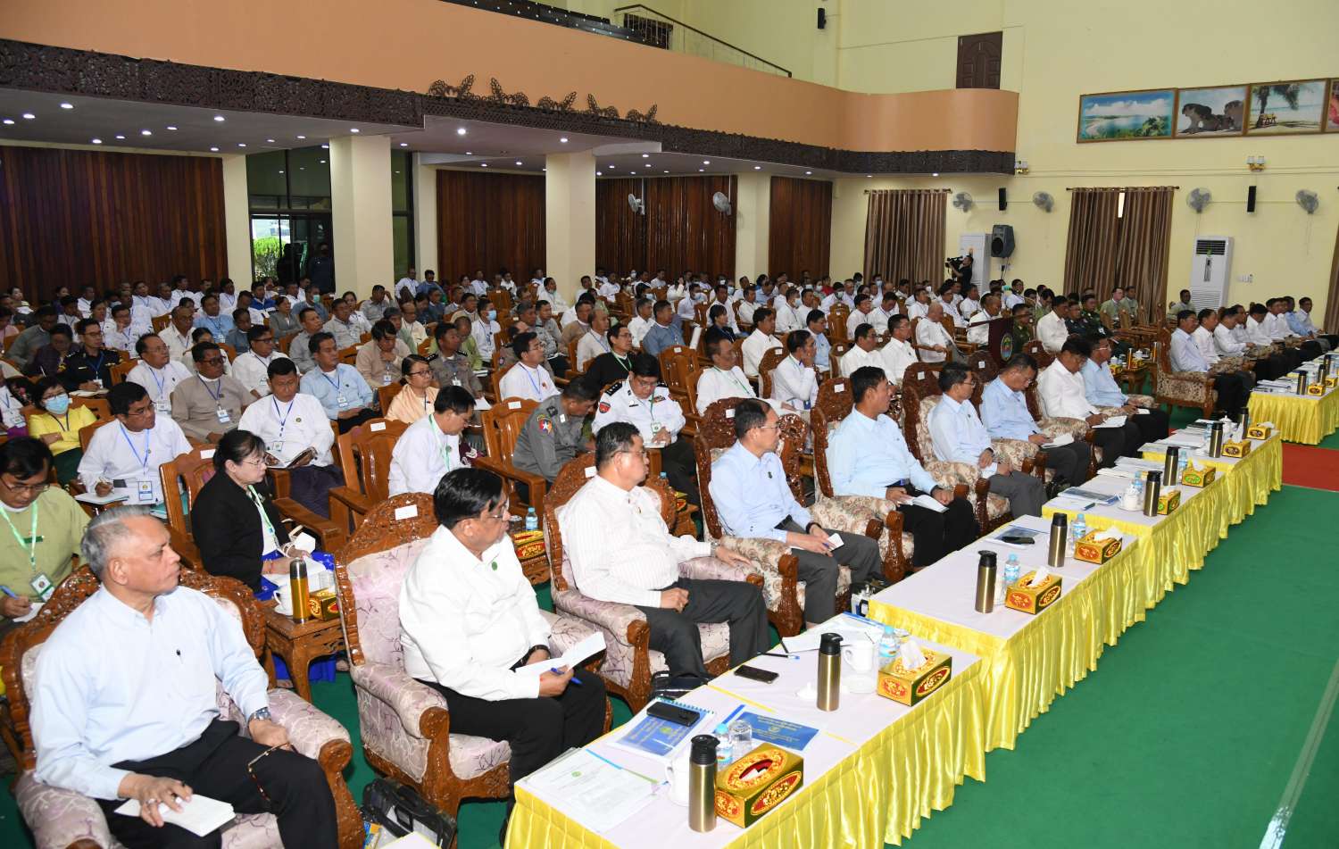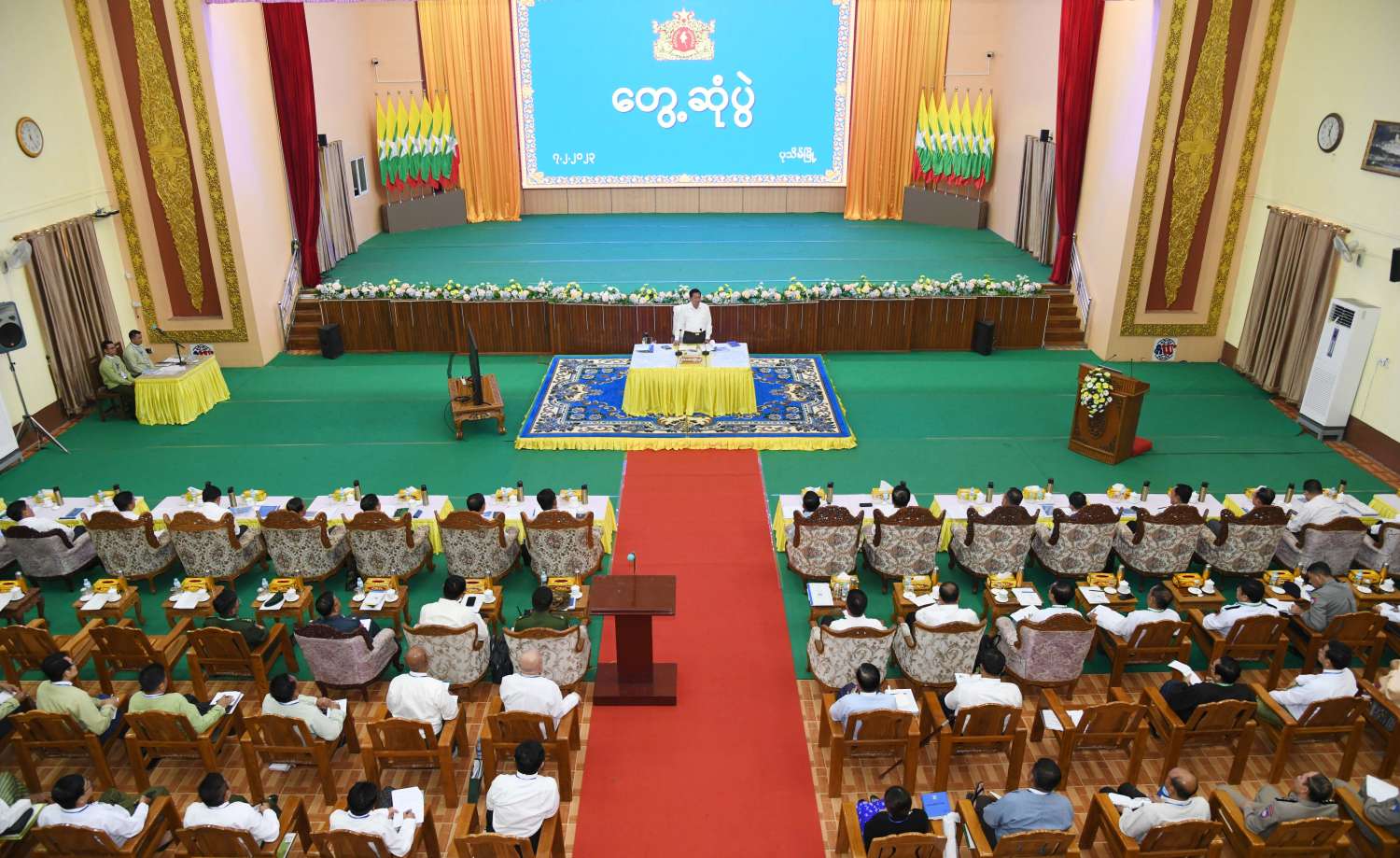 နိုင်ငံတော်စီမံအုပ်ချုပ်ရေးကောင်စီဥက္ကဋ္ဌ နိုင်ငံတော်ဝန်ကြီးချုပ် ဗိုလ်ချုပ်မှူးကြီး မင်းအောင်လှိုင်သည် ယနေ့နံနက်ပိုင်းတွင် ဧရာဝတီတိုင်းဒေသကြီးအတွင်းရှိ ခရိုင်၊ မြို့နယ်အဆင့် ဌာနဆိုင်ရာတာဝန်ရှိသူများ၊ အသေးစား၊ အငယ်စားနှင့်အလတ်စားစီးပွားရေး(MSME) လုပ်ငန်းရှင်များအား ပုသိမ်မြို့၊ မြို့တော်ခန်းမ၌တွေ့ဆုံ၍ ဒေသဖွံ့ဖြိုးတိုးတက်ရေးဆိုင်ရာများနှင့် စီးပွားရေးလုပ်ငန်းဖွံ့ဖြိုးတိုးတက်ရေးဆိုင်ရာများကို ဆွေးနွေး ပြောကြားသည်။