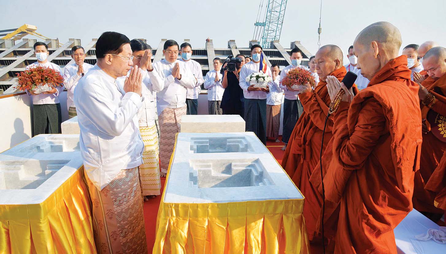 ပြည်ထောင်စုနယ်မြေ၊ နေပြည်တော်၊ ဒက္ခိဏသီရိမြို့နယ်ရှိ မာရဝိဇယဗုဒ္ဓဥယျာဉ်တော်အတွင်း တည်ထားကိုးကွယ်ရန် ဆောင်ရွက်လျက်ရှိသည့် မာရဝိဇယဗုဒ္ဓရုပ်ပွားတော်မြတ်ကြီး ရတနာပလ္လင်တော်ထက် အလယ်ဗဟိုဌာနများတွင် ဦးဆောင်ဘုရားဒါယကာ နိုင်ငံတော်စီမံအုပ်ချုပ်ရေးကောင်စီဥက္ကဋ္ဌ နိုင်ငံတော်ဝန်ကြီးချုပ် ဗိုလ်ချုပ်မှူးကြီး မင်းအောင်လှိုင် အမှူးပြုသည့် ပြည်ထောင်စုသမ္မတမြန်မာနိုင်ငံတော် တစ်ဝန်းလုံးမှ ဌာပနာတော်ကုသိုလ်ရှင်များလှူဒါန်းထားသည့် ဌာပနာတော်များ သွင်းလှူပူဇော်ခြင်း မဟာမင်္ဂလာအခမ်းအနားကို ယနေ့နံနက်ပိုင်းတွင် အဆိုပါ ဗုဒ္ဓဥယျာဉ်တော်အတွင်းရှိ မာရဝိဇယဗုဒ္ဓရုပ်ပွားတော်မြတ်ကြီး တည်ထားကိုးကွယ်သည့် ရတနာပလ္လင်တော်ထက်၌ ကျင်းပပြုလုပ်သည်။