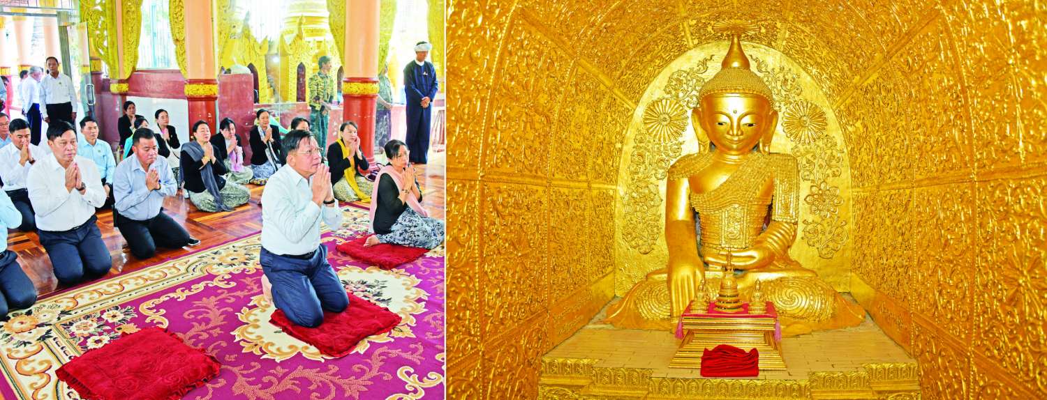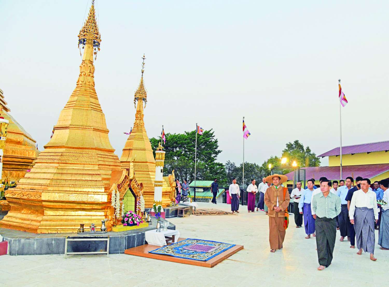 ယမန်နေ့ညပိုင်းကလည်း နိုင်ငံတော်စီမံအုပ်ချုပ်ရေးကောင်စီဥက္ကဋ္ဌ နိုင်ငံတော်ဝန်ကြီးချုပ်နှင့် ဇနီး၊ အဖွဲ့ဝင်များသည် ရှမ်းပြည်နယ်(အရှေ့ပိုင်း) တောင်ကြီးမြို့ ကျက်သရေဆောင် ရွှေဘုန်းပွင့်စေတီတော်မြတ်ကြီးသို့ သွားရောက်ဖူးမြော်ကြည်ညိုသည်။