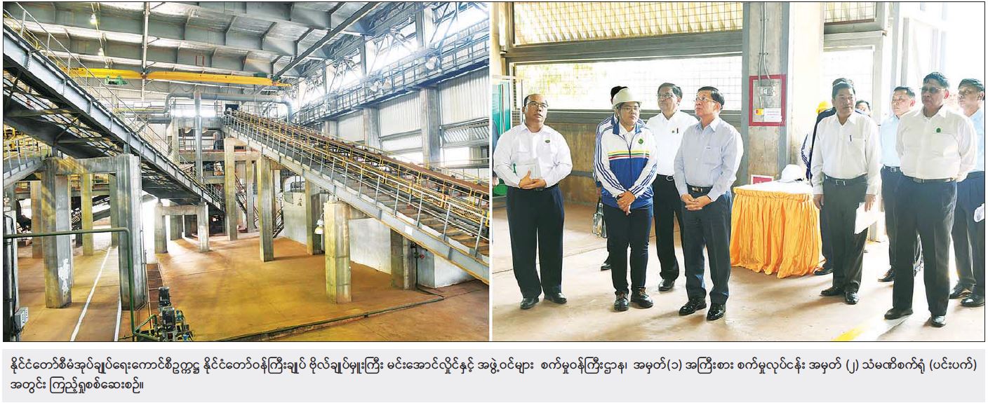 ထို့နောက် နိုင်ငံတော်စီမံအုပ်ချုပ်ရေးကောင်စီဥက္ကဋ္ဌ နိုင်ငံတော်ဝန်ကြီးချုပ်နှင့် အဖွဲ့ဝင်များသည် စက်ရုံအတွင်းလှည့်လည်၍ သံသတ္တုရိုင်းပြုပြင်ရေးအလုပ်ရုံ၊ ကုန်ကြမ်းသိုလှောင်ဖြန့်ဖြူးရေး အလုပ်ရုံ၊ စွန့်ပစ်အပူသုံးလျှပ်စစ်ဓာတ်အားပေးအလုပ်ရုံ၊ သံရည်ကျိုအလုပ်ရုံ၊ သံစိမ်းတုံးပုံလောင်း အလုပ်ရုံ၊ သံစိမ်းတုံးသိုလှောင်သည့်နေရာ၊ ဖိအားမြင့် လေထုတ်အလုပ်ရုံတို့ကို ကြည့်ရှုစစ်ဆေးခဲ့ပြီး တာဝန်ရှိသူများ၏ တင်ပြချက်များအပေါ် လိုအပ်သည်များ ညှိနှိုင်းဖြည့်ဆည်း ဆောင်ရွက်ပေးသည်။ ယင်းနောက် နိုင်ငံတော်စီမံအုပ်ချုပ်ရေးကောင်စီဥက္ကဋ္ဌ နိုင်ငံတော်ဝန်ကြီးချုပ်က စက်ရုံဝန်ထမ်းများ အတွက် ချီးမြှင့်ငွေများကိုပေးအပ်ရာ တာဝန်ရှိသူများက လက်ခံရယူခဲ့ကြသည်။