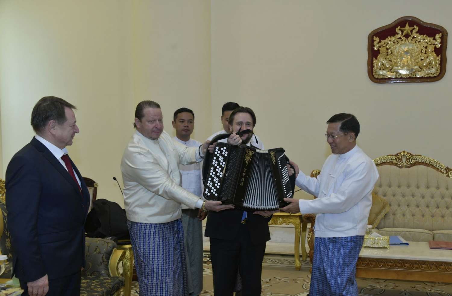 တွေ့ဆုံပွဲအပြီးတွင် နိုင်ငံတော်စီမံအုပ်ချုပ်ရေးကောင်စီဥက္ကဋ္ဌ နိုင်ငံတော်ဝန်ကြီးချုပ်နှင့် ရုရှားဖက်ဒရေးရှင်းနိုင်ငံ၊ ရော့စ်ကွန်ဂရက်ရင်းနှီးမြှုပ်နှံမှုရန်ပုံငွေအဖွဲ့မှ ညွှန်ကြားရေးမှူးတို့သည် အမှတ်တရလက်ဆောင်ပစ္စည်းများ အပြန်အလှန်ပေးအပ်ကြပြီး တက်ရောက်လာကြသူများနှင့်အတူ မှတ်တမ်းတင်ဓာတ်ပုံရိုက်ကူးကြသည်။