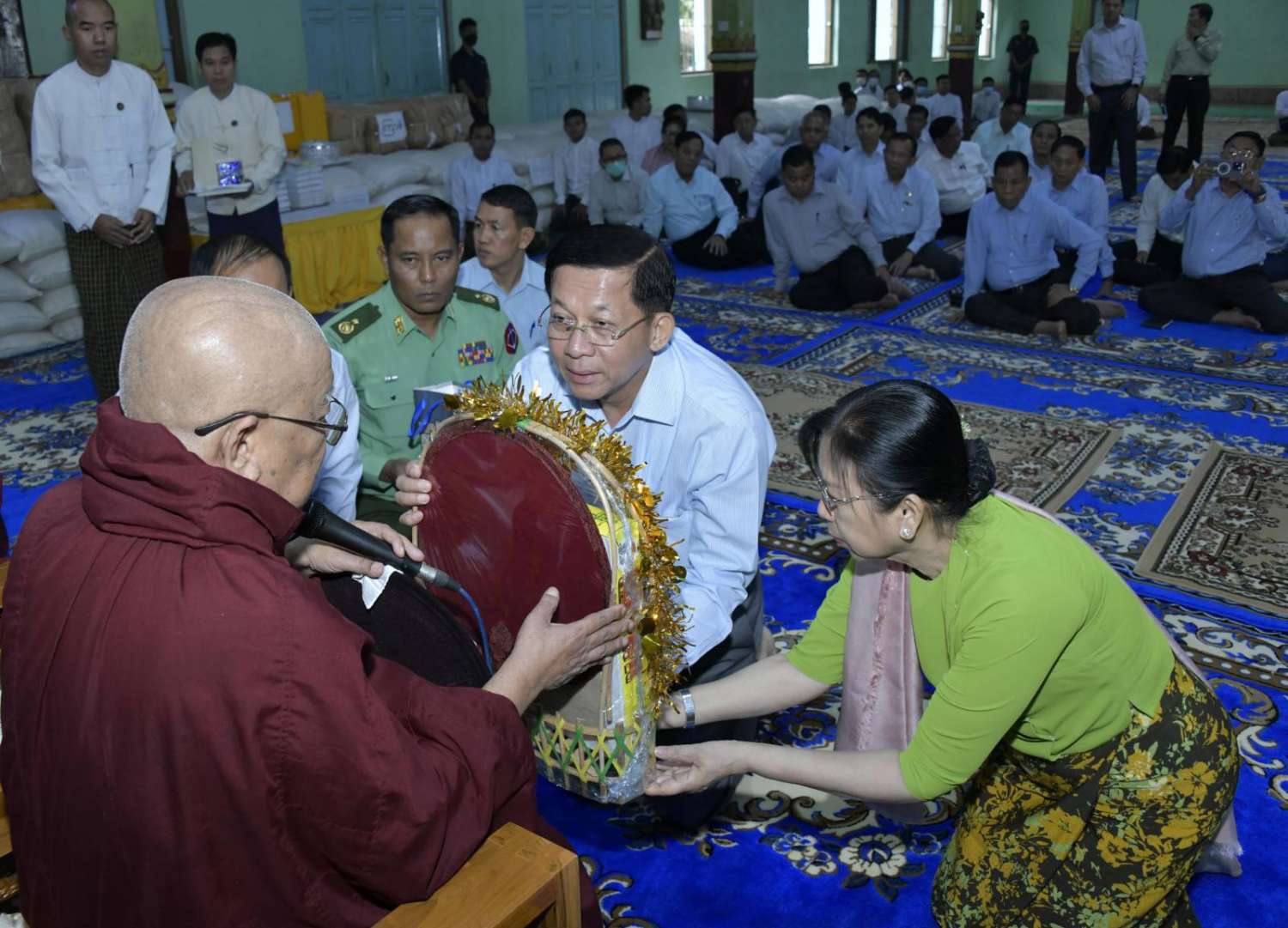 ယနေ့ပြုလုပ်သည့် နိုင်ငံတော်စီမံအုပ်ချုပ်ရေးကောင်စီမှ စစ်ကိုင်းတိုင်းဒေသကြီး၊ မုံရွာမြို့ရှိစာသင်တိုက်များမှ သံဃာတော် ၇၉၁ ပါးအတွက် ဆွမ်းဆန်တော်၊ ဆီ၊ ဆား၊ ပဲနှင့်နဝကမ္မအလှူတော်ငွေများ ဆက်ကပ်လှူဒါန်းခြင်းအခမ်းအနားတွင် လှူဒါန်းမှုစုစုပေါင်းအနေဖြင့် ဆန် ၁၈၁ အိတ်၊ ဆီ ၃၂၆ ပိဿာ၊ ဆား ၂၇၂ ပိဿာ၊ ပဲ ၃၂၆ ပိဿာ၊ ကြာဇံ ၁၆၃ ပိဿာနှင့် နဝကမ္မအလှူငွေအနေဖြင့် စာသင်တိုက်တစ်တိုက်လျှင် ကျပ်သိန်း ၅၀ နှုန်းဖြင့် ငွေကျပ် ၃၅၀ သိန်းတို့ကို ဆက်ကပ်လှူဒါန်းခဲ့ကြောင်း သတင်းရရှိသည်။