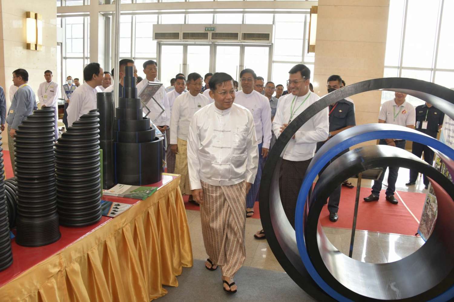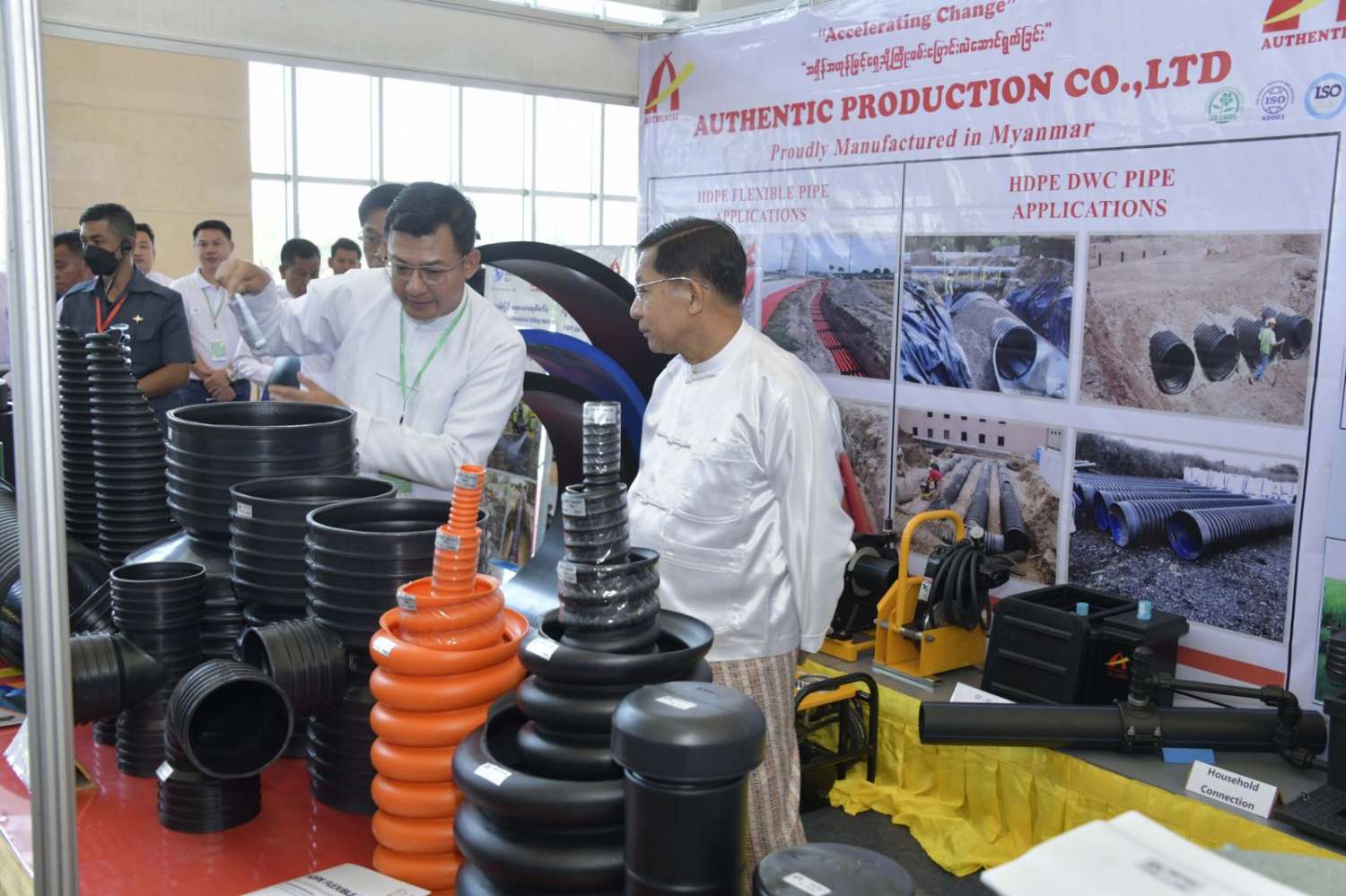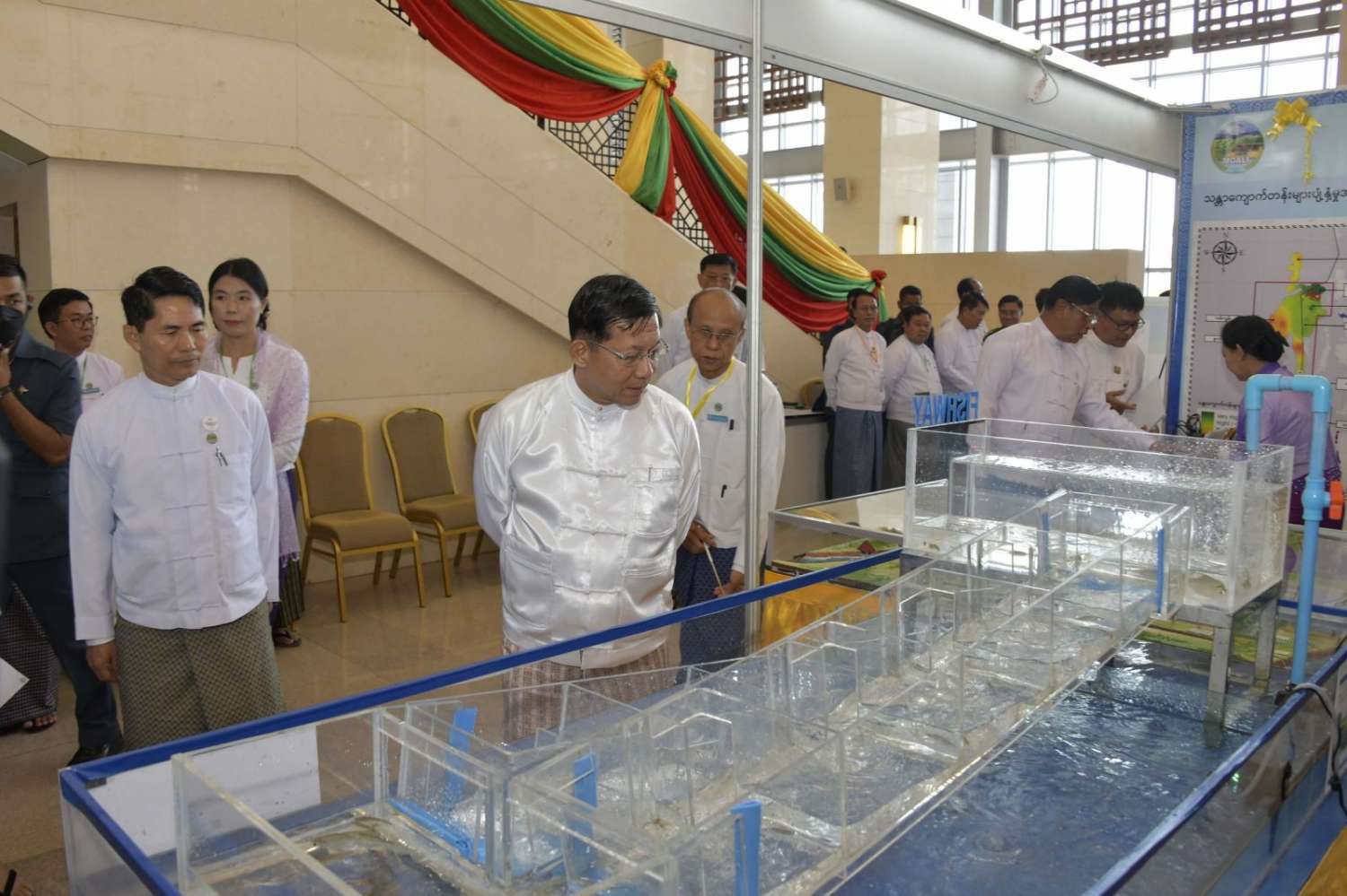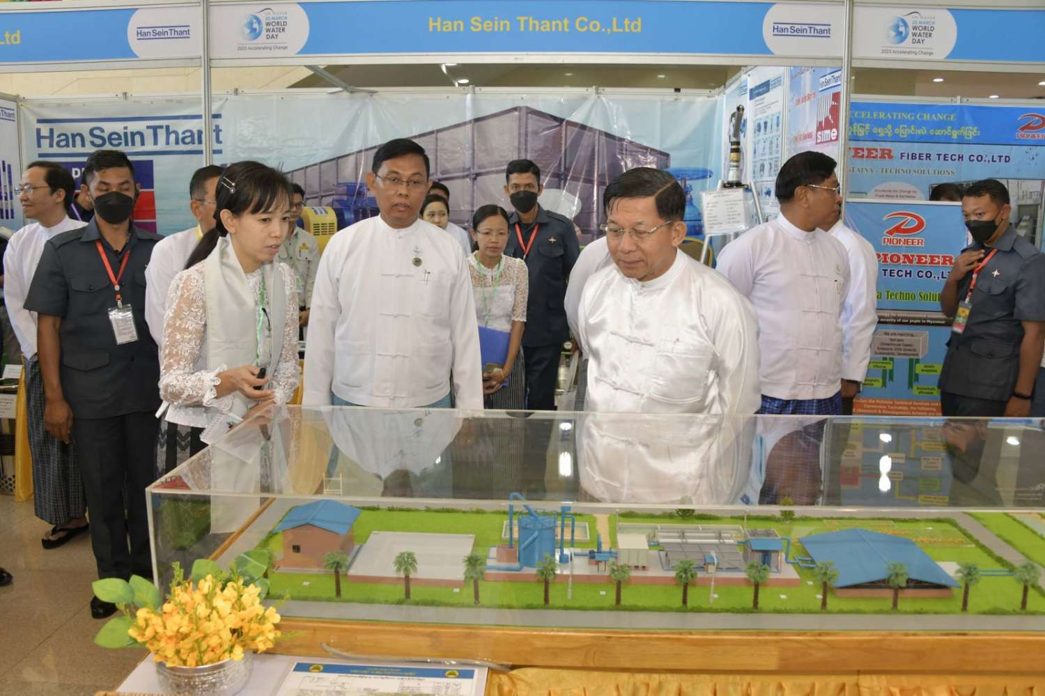 ယင်းနောက် နိုင်ငံတော်စီမံအုပ်ချုပ်ရေးကောင်စီဥက္ကဋ္ဌ နိုင်ငံတော်ဝန်ကြီးချုပ် နှင့် အခမ်းအနား တက်ရောက်လာကြသူများသည် ကမ္ဘာ့ရေနေ့ ၂၀၂၃ အထိမ်း အမှတ် ပြခန်းများအတွင်း လှည့်လည် ကြည့်ရှုခဲ့ကြသည်။