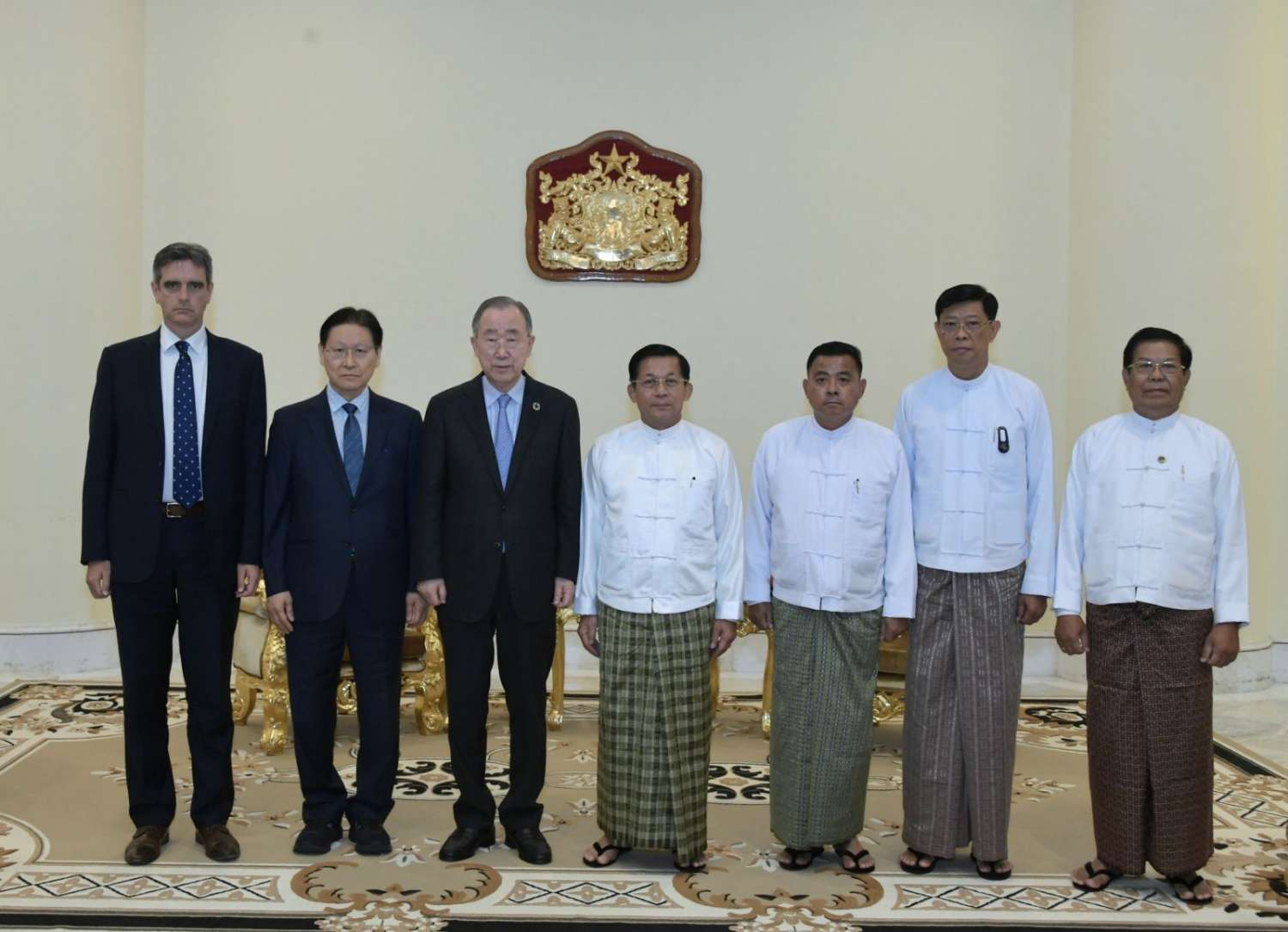 နိုင်ငံတော်စီမံအုပ်ချုပ်ရေးကောင်စီဥက္ကဋ္ဌ နိုင်ငံတော်ဝန်ကြီးချုပ် ဗိုလ်ချုပ်မှူးကြီးမင်းအောင်လှိုင်သည် The Elders အဖွဲ့ ဒုတိယဥက္ကဋ္ဌ၊ ကုလသမဂ္ဂအတွင်းရေးမှူးချုပ်ဟောင်း မစ္စတာဘန်ကီမွန်းအား ယနေ့နံနက်ပိုင်းတွင် နေပြည်တော်ရှိ နိုင်ငံတော်စီမံအုပ်ချုပ်ရေးကောင်စီဥက္ကဋ္ဌရုံး၊ ဧည့်ခန်းမ၌ လက်ခံတွေ့ဆုံသည်။