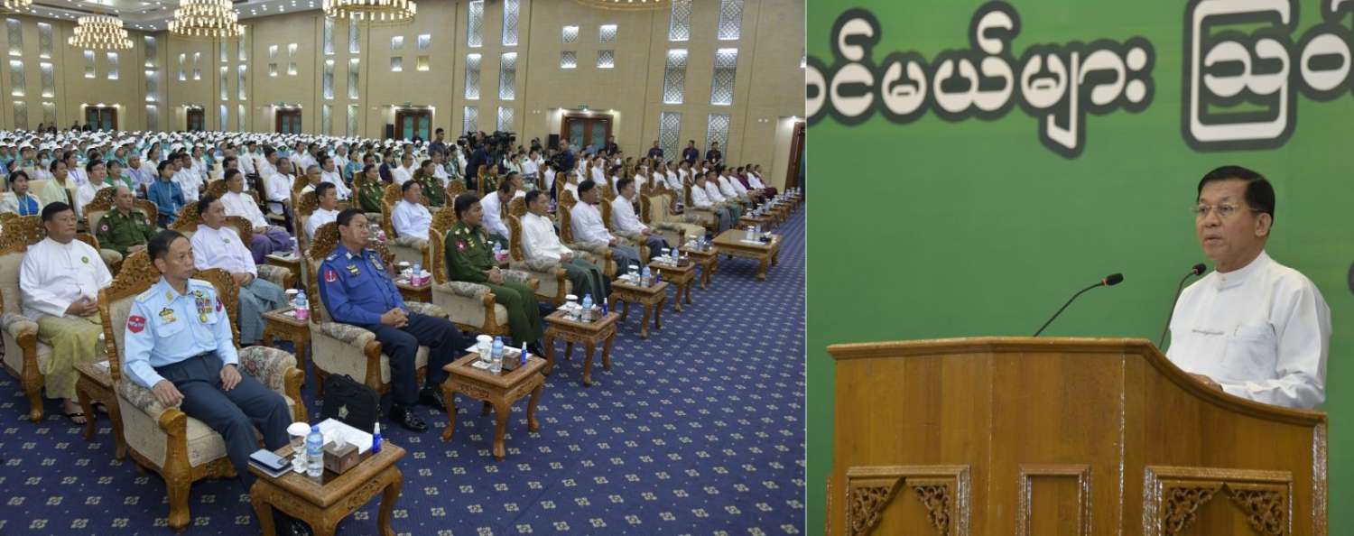 နိုင်ငံတော်စီမံအုပ်ချုပ်ရေးကောင်စီဥက္ကဋ္ဌ နိုင်ငံတော်ဝန်ကြီးချုပ် ဗိုလ်ချုပ်မှူးကြီး မင်းအောင်လှိုင် ၂၀၂၂-၂၀၂၃ ပညာသင်နှစ် လူရည်ချွန်မောင်မယ်များအား တွေ့ဆုံဩဝါဒ စကားမြွက်ကြား