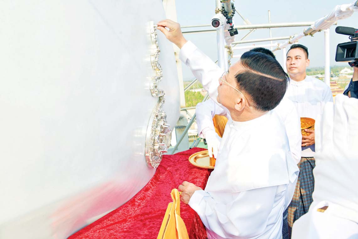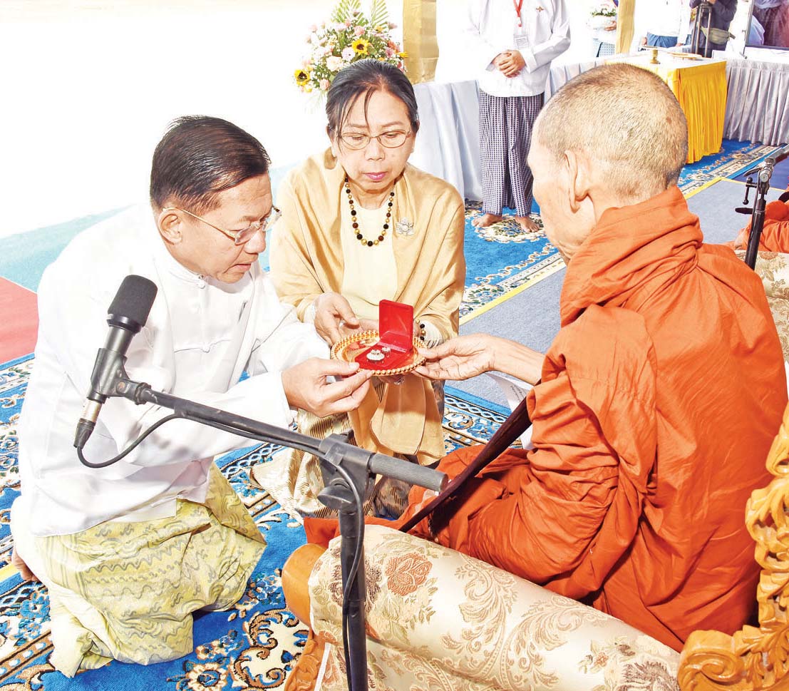 ယင်းနောက် “ဗုဒ္ဓသာသနံ စိရံ တိဋ္ဌတု” သုံးကြိမ်ရွတ်ဆိုဆုတောင်း၍ အခမ်းအနားကိုရုပ်သိမ်းပြီး နိုင်ငံတော်စီမံအုပ်ချုပ်ရေးကောင်စီဥက္ကဋ္ဌ နိုင်ငံတော်ဝန်ကြီးချုပ်နှင့် ဇနီးတို့က အခမ်းအနားအောင်မြင်ခြင်းအထိမ်းအမှတ် ရတနာရွှေမိုးငွေမိုးများ ရွာသွန်းဖြိုးကြသည်။