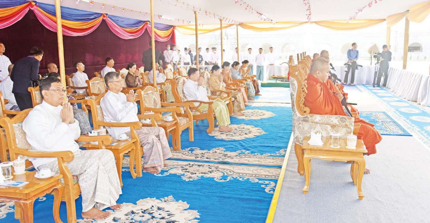ယင်းနောက် နိုင်ငံတော်စီမံအုပ်ချုပ်ရေးကောင်စီဥက္ကဋ္ဌ နိုင်ငံတော်ဝန်ကြီးချုပ်နှင့် ဇနီးအမှူးပြုသည့် ဧည့်ပရိသတ်များက ရတနတ္တယပူဇာ ဂါထာတော်နှင့် သဗ္ဗသင်္ဂါဟက မေတ္တာပို့ လင်္ကာနှစ်ပိုဒ်ကို သံပြိုင်ညီညာသုံးကြိမ် ရွတ်ဆိုပူဇော်ကြသည်။