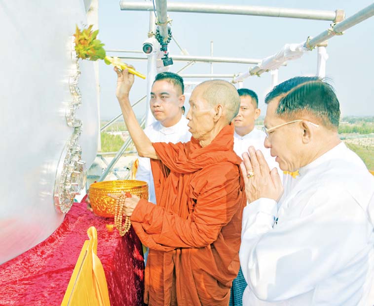 ပြည်ထောင်စုနယ်မြေ၊ နေပြည်တော်၊ ဒက္ခိဏသီရိမြို့နယ်ရှိ မာရဝိဇယ ဗုဒ္ဓဥယျာဉ်တော် အတွင်းတည်ထားကိုးကွယ်ရန် ဆောင်ရွက်လျက်ရှိသည့် မာရဝိဇယဗုဒ္ဓ ရုပ်ပွားတော်မြတ်ကြီးအား ဥဏ္ဏလုံမွေးရှင်တော်ဓာတ် စီသွင်းပူဇော်ခြင်း မဟာမင်္ဂလာအခမ်းအနားကို ယနေ့နံနက်ပိုင်းတွင် ကျင်းပပြုလုပ်ရာ ဦးဆောင်ဘုရားဒါယကာ နိုင်ငံတော်စီမံအုပ်ချုပ်ရေးကောင်စီဥက္ကဋ္ဌ နိုင်ငံတော်ဝန်ကြီးချုပ် ဗိုလ်ချုပ်မှူးကြီး မင်းအောင်လှိုင် တက်ရောက်ပူဇော်သည်။