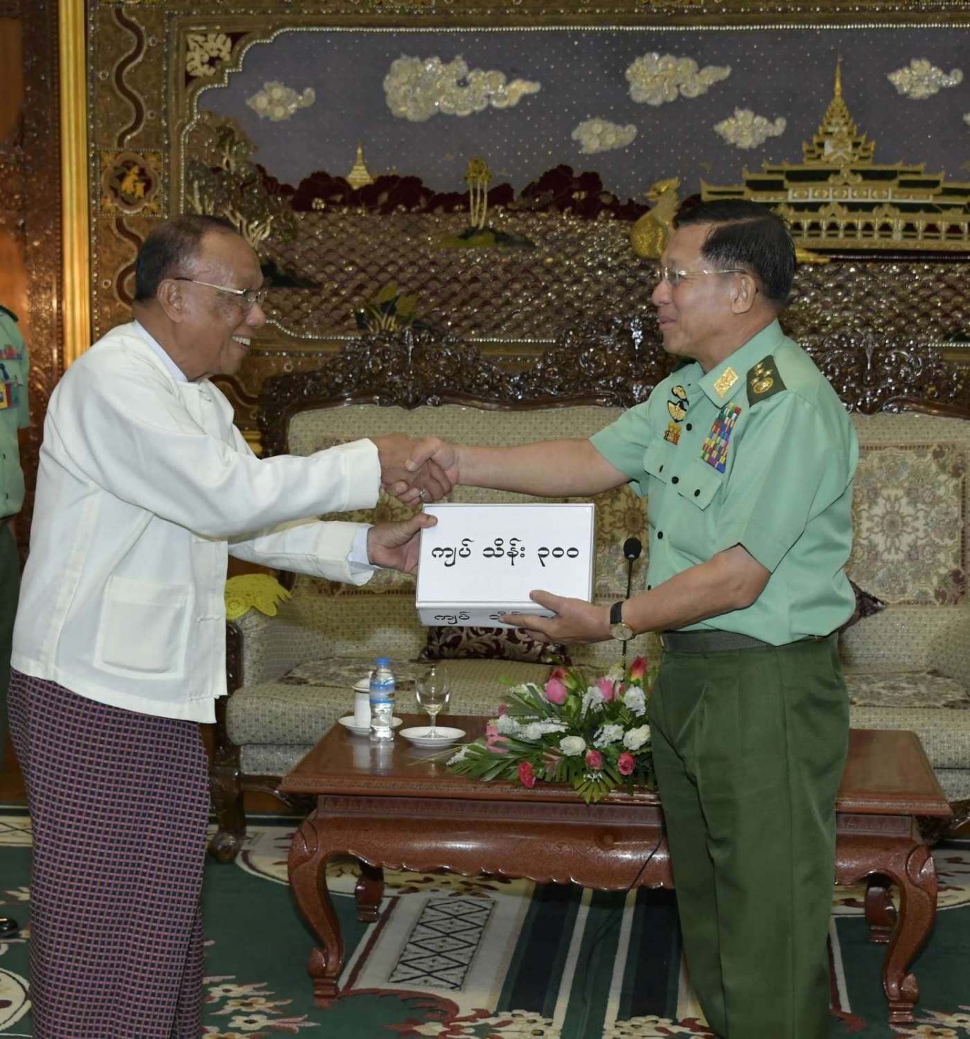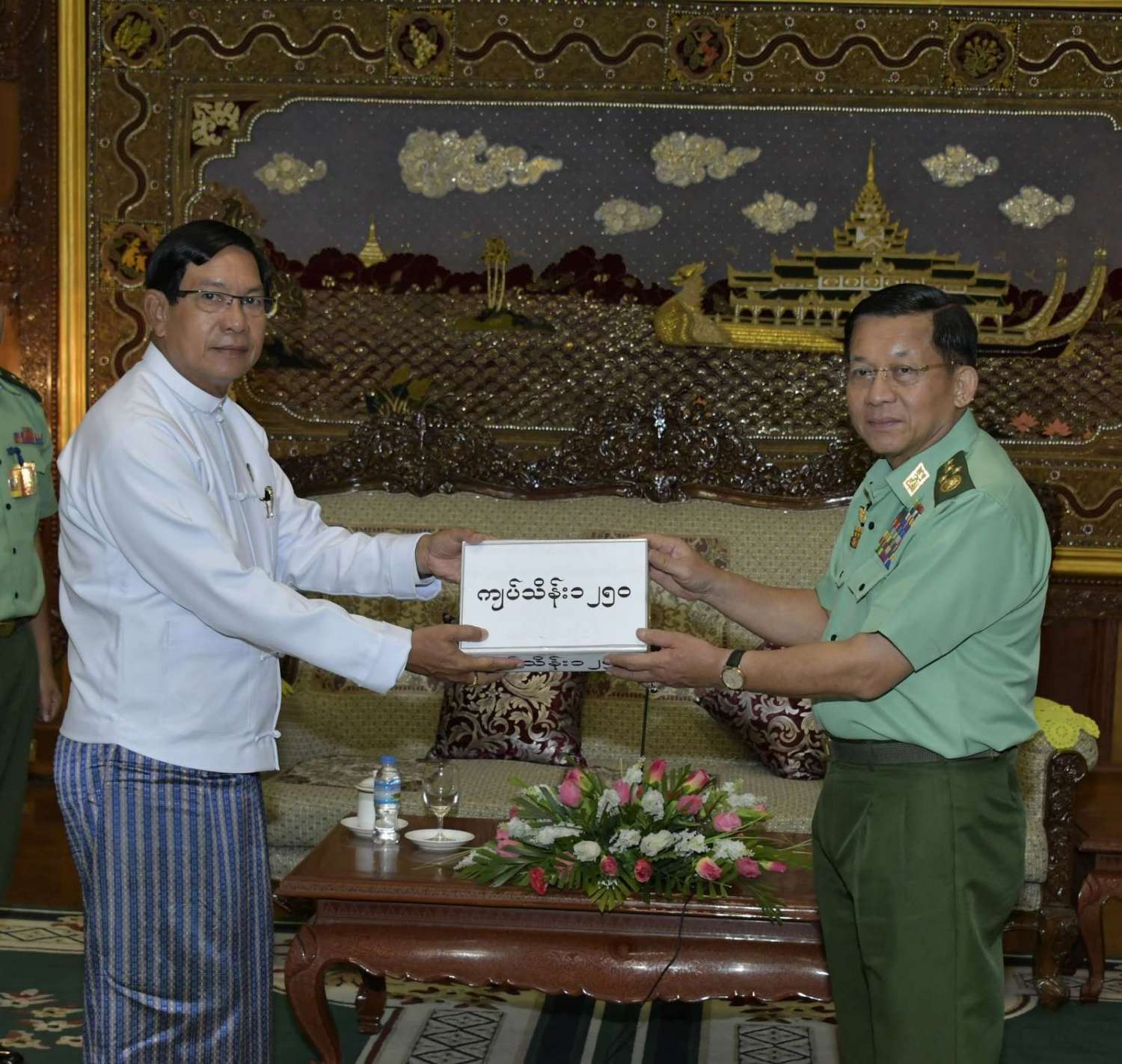 အားကောင်းသောဆိုင်ကလုန်းမုန်တိုင်း (Severe Cyclonic Storm) "မိုခါ" (MOCHA) ဝင်ရောက်မှုကြောင့် မုန်တိုင်းဒဏ်သင့်ခဲ့ရသည့်ဒေသများ၌ ကူညီကယ်ဆယ်ရေးနှင့် ပြန်လည်ထူထောင်ရေးလုပ်ငန်းများ ဆောင်ရွက်ရာတွင် အသုံးပြုနိုင်ရေး အလှူငွေများ ပေးအပ်လှူဒါန်းပွဲကို ယနေ့နံနက်ပိုင်းတွင် ရန်ကုန်တိုင်းစစ်ဌာနချုပ်၊ ကုန်းမြင့်သာရှိ ဇေယျာသီရိဗိမာန် ဧည့်ခန်းဆောင်၌ ကျင်းပပြုလုပ်ရာ နိုင်ငံတော်စီမံအုပ်ချုပ်ရေးကောင်စီဥက္ကဋ္ဌ နိုင်ငံတော်ဝန်ကြီးချုပ် ဗိုလ်ချုပ်မှူးကြီး မင်းအောင်လှိုင် တက်ရောက်သည်။