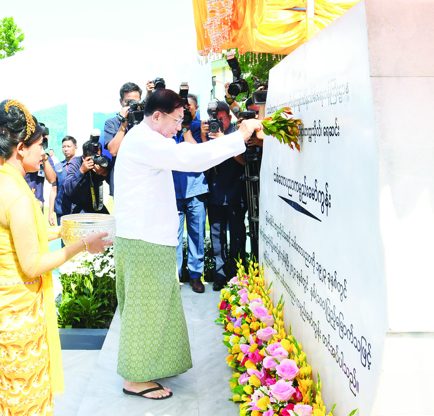 ယင်းနောက် နိုင်ငံတော်စီမံအုပ်ချုပ်ရေးကောင်စီဥက္ကဋ္ဌ နိုင်ငံတော်ဝန်ကြီးချုပ်ဗိုလ်ချုပ်မှူးကြီးမင်းအောင်လှိုင်က သစ်တောပညာ နှစ်(၁၀၀) ရာပြည့်အထိမ်းအမှတ်ကမ္ပည်းမော်ကွန်းအား စက်ခလုတ်နှိပ်ဖွင့်လှစ်ပေးပြီး အမွှေးနံ့သာရည်ဖြင့် ပက်ဖျန်းပေးသည်။
