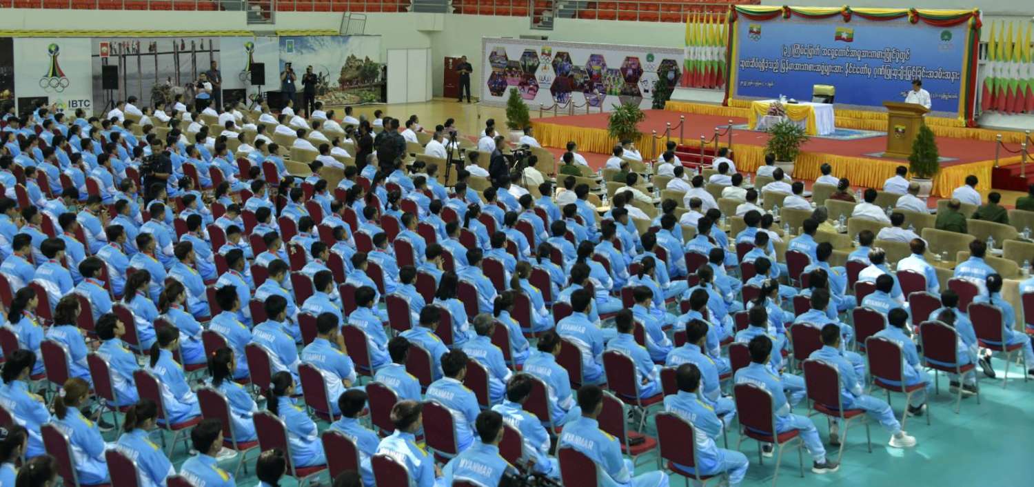 (၃၂) ကြိမ်မြောက် အရှေ့တောင်အာရှအားကစားပြိုင်ပွဲတွင် ဆုတံဆိပ်ရရှိခဲ့သည့် မြန်မာအားကစားအဖွဲ့များအား နိုင်ငံတော်က ဂုဏ်ပြုဆုချီးမြှင့်ခြင်းအခမ်းအနားကျင်းပ၊ နိုင်ငံတော်စီမံအုပ်ချုပ်ရေးကောင်စီဥက္ကဋ္ဌ နိုင်ငံတော်ဝန်ကြီးချုပ် ဗိုလ်ချုပ်မှူးကြီး မင်းအောင်လှိုင် တက်ရောက်အမှာစကားပြောကြားပြီး ဂုဏ်ပြုဆုများ ပေးအပ်ချီးမြှင့်