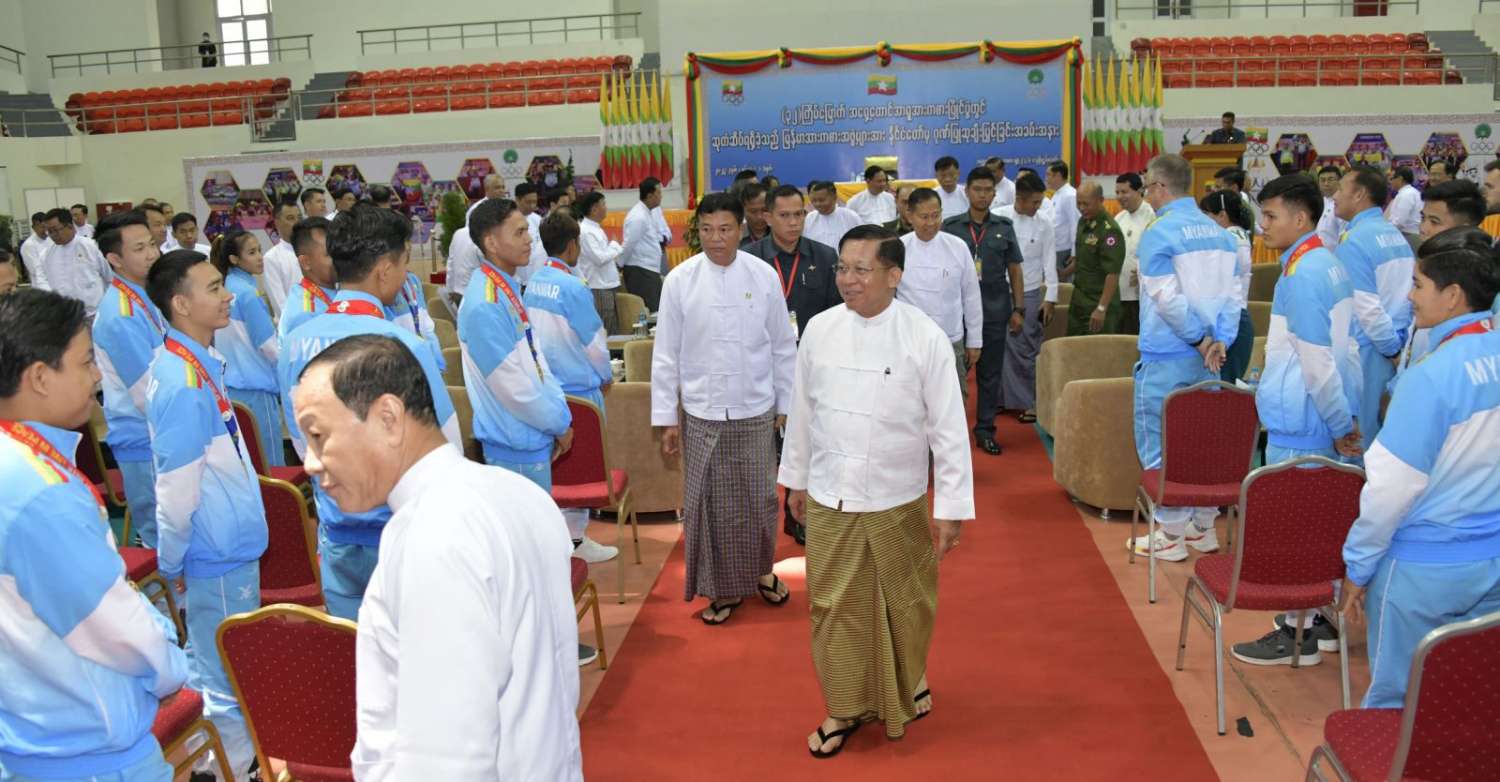 ကမ္ဘောဒီးယားနိုင်ငံ၌ ကျင်းပသည့် (၃၂) ကြိမ်မြောက် အရှေ့တောင်အာရှ အားကစားပြိုင်ပွဲတွင် ဆုတံဆိပ်ရရှိခဲ့သည့် မြန်မာအားကစားအဖွဲ့များအား နိုင်ငံတော်က ဂုဏ်ပြုဆုချီးမြှင့်ခြင်းအခမ်းအနားကို ယနေ့နံနက်ပိုင်းတွင် နေပြည်တော်ရှိ ဝဏ္ဏသိဒ္ဓိအားကစားရုံ (B)၌ ကျင်းပရာ နိုင်ငံတော်စီမံအုပ်ချုပ်ရေးကောင်စီဥက္ကဋ္ဌ နိုင်ငံတော်ဝန်ကြီးချုပ် ဗိုလ်ချုပ်မှူးကြီး မင်းအောင်လှိုင် တက်ရောက်အမှာစကားပြောကြားပြီး ဂုဏ်ပြုဆုများ ပေးအပ်ချီးမြှင့်သည်။