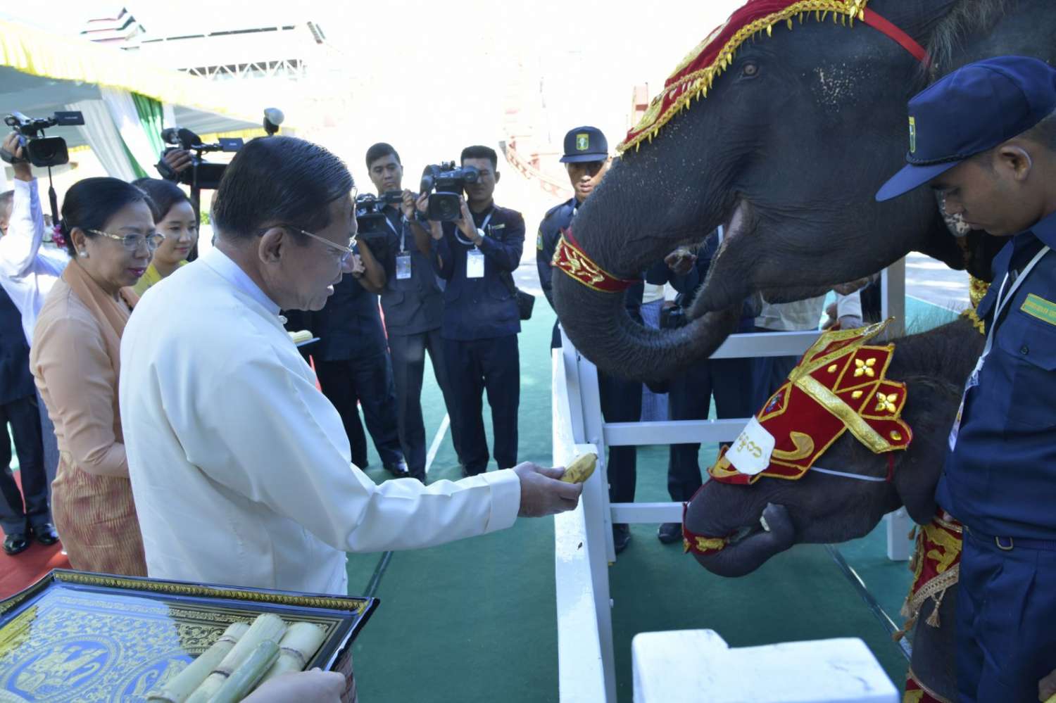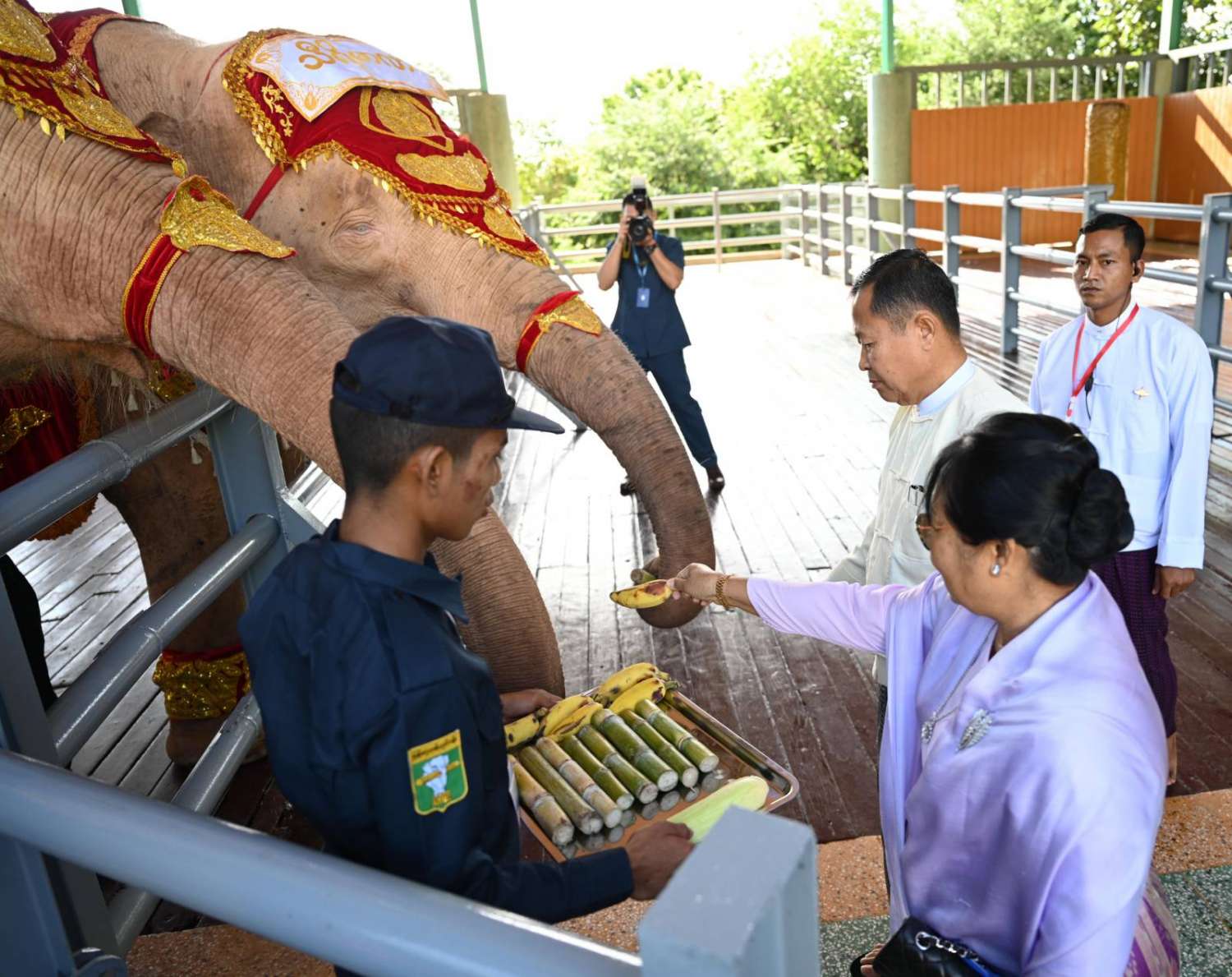 ထို့နောက် နိုင်ငံတော်စီမံအုပ်ချုပ်ရေးကောင်စီဥက္ကဋ္ဌ နိုင်ငံတော်ဝန်ကြီးချုပ်နှင့် ဇနီးတို့က ရတနာဆင်ဖြူတော်လေး “ရဋ္ဌနန္ဒက” အား အသက်(၁)နှစ်ပြည့်အထိမ်းအမှတ် လက်ဆောင်ကိုပေးအပ်ရာ တာဝန်ရှိသူတစ်ဦးက လက်ခံရယူသည်။ ယင်းနောက် နိုင်ငံတော်စီမံအုပ်ချုပ်ရေးကောင်စီဥက္ကဋ္ဌ နိုင်ငံတော်ဝန်ကြီးချုပ်နှင့် ဇနီး၊ ကောင်စီဒုတိယဥက္ကဋ္ဌ ဒုတိယဝန်ကြီးချုပ်နှင့် ဇနီးတို့က ရတနာဆင်ဖြူတော်လေး “ရဋ္ဌနန္ဒက” နှင့် မိခင်ဆင်မကြီးတို့အား အစာအာဟာရများ ကျွေးမွေးသည်။