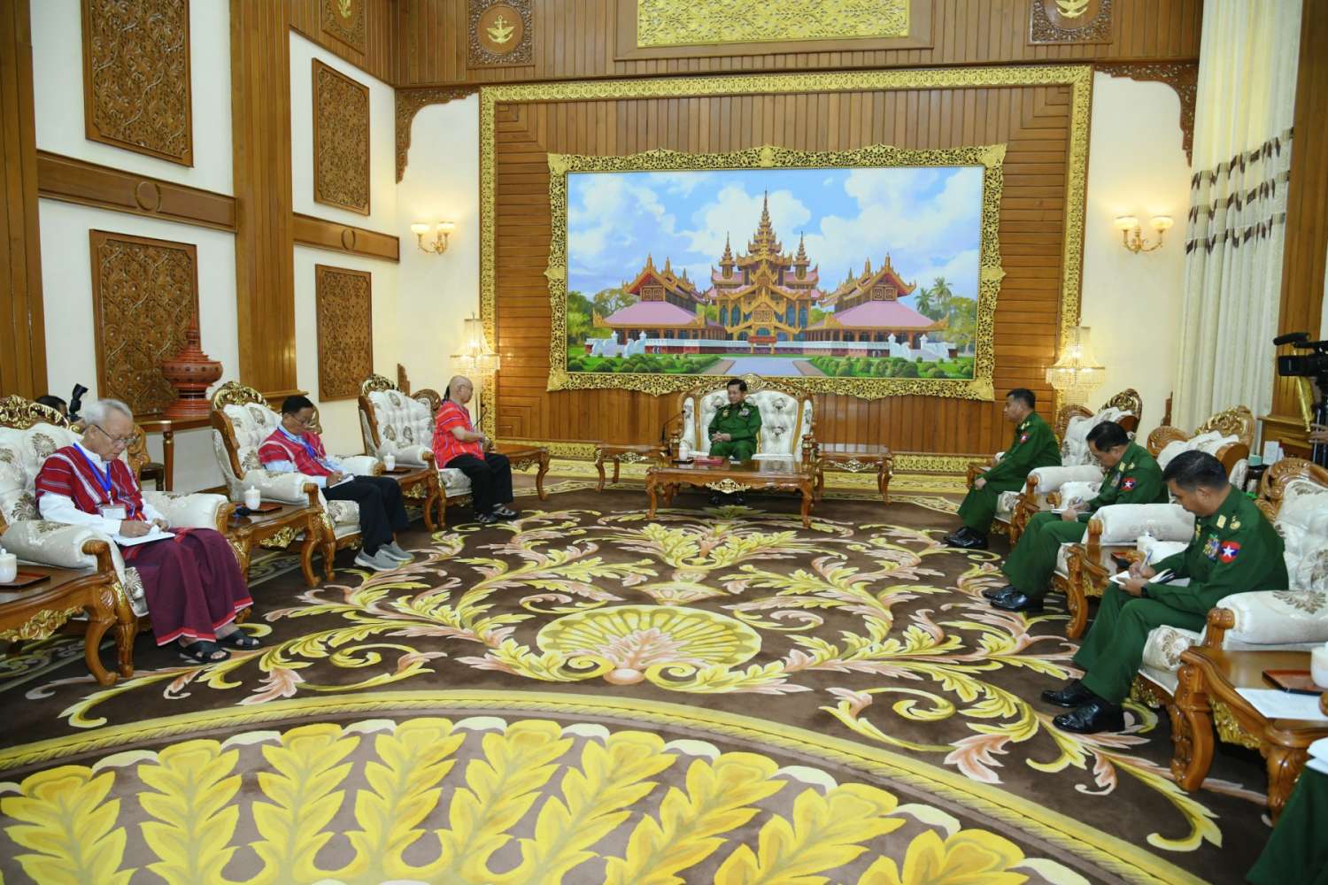 နိုင်ငံတော်စီမံအုပ်ချုပ်ရေးကောင်စီဥက္ကဋ္ဌ တပ်မတော်ကာကွယ်ရေးဦးစီးချုပ် ဗိုလ်ချုပ်မှူးကြီး မင်းအောင်လှိုင်သည် ကရင်တိုင်းရင်းသားခေါင်းဆောင် စောမူတူးစေးဖိုး ဦးဆောင်သည့်အဖွဲ့အား ယနေ့နံနက်ပိုင်းတွင် နေပြည်တော်ရှိ ဘုရင့်နောင်ရိပ်သာ၊ ဧည့်ခန်းမဆောင်၌ လက်ခံတွေ့ဆုံပြီး ငြိမ်းချမ်းရေးဆိုင်ရာကိစ္စရပ်များ ဆွေးနွေးသည်။