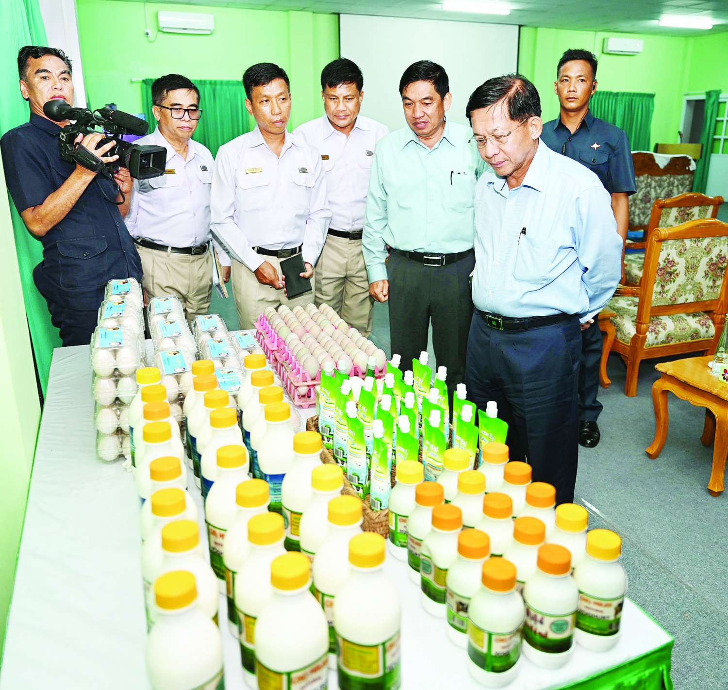 ထို့နောက် နိုင်ငံတော်စီမံအုပ်ချုပ်ရေးကောင်စီဥက္ကဋ္ဌ နိုင်ငံတော်ဝန်ကြီးချုပ်နှင့် အဖွဲ့ဝင်များသည် သီလဝါဘက်စုံစိုက်ပျိုးမွေးမြူရေးဇုန်တွင် မွေးမြူထားရှိသည့် ငါးအမျိုးအစားနမူနာပြသ ထားရှိမှုများ၊ စိုက်ပျိုးမွေးမြူရေးလုပ်ငန်းများမှ ထွက်ရှိသည့် ကြက်ဥ၊ ဘဲဥ၊ နို့ထွက်ပစ္စည်းများ၊ ခင်းကျင်းပြသထားမှုများကို ကြည့်ရှုသည်။