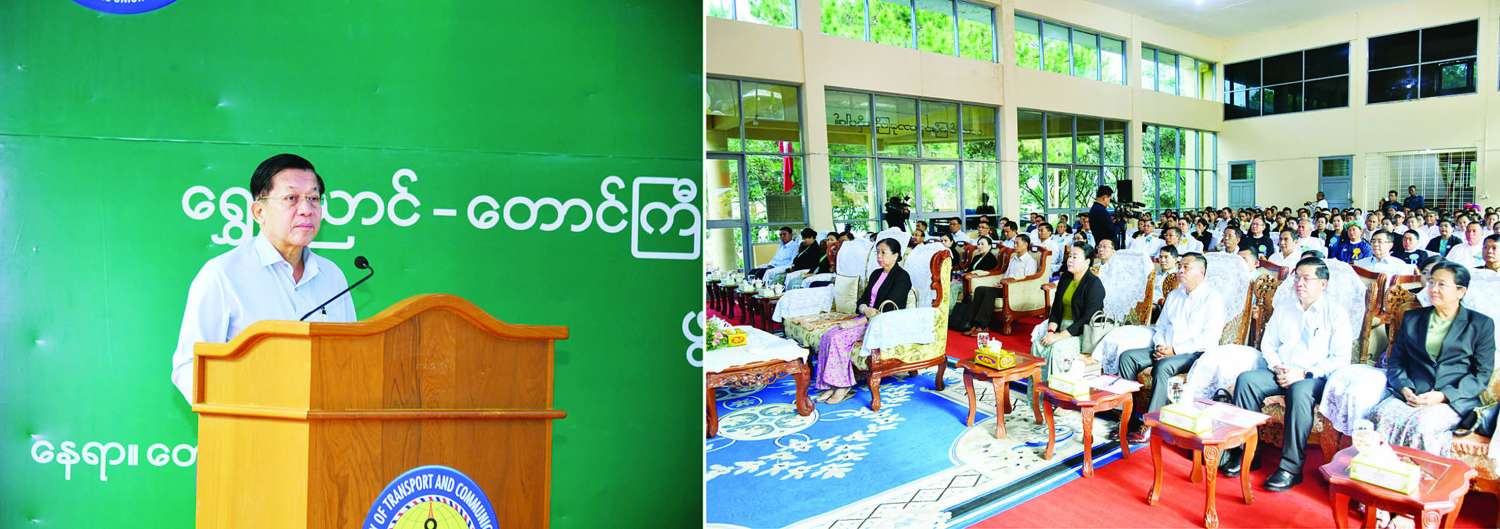 နိုင်ငံတော်စီမံအုပ်ချုပ်ရေးကောင်စီဥက္ကဋ္ဌ နိုင်ငံတော်ဝန်ကြီးချုပ် ဗိုလ်ချုပ်မှူးကြီးမင်းအောင်လှိုင် ရွှေညောင်-တောင်ကြီး-နောင်ကားလမ်းခွဲ-ပင်းပက်ရထားလမ်းပိုင်း ဖွင့်လှစ်ခြင်းအခမ်းအနားသို့ တက်ရောက်ချီးမြှင့်