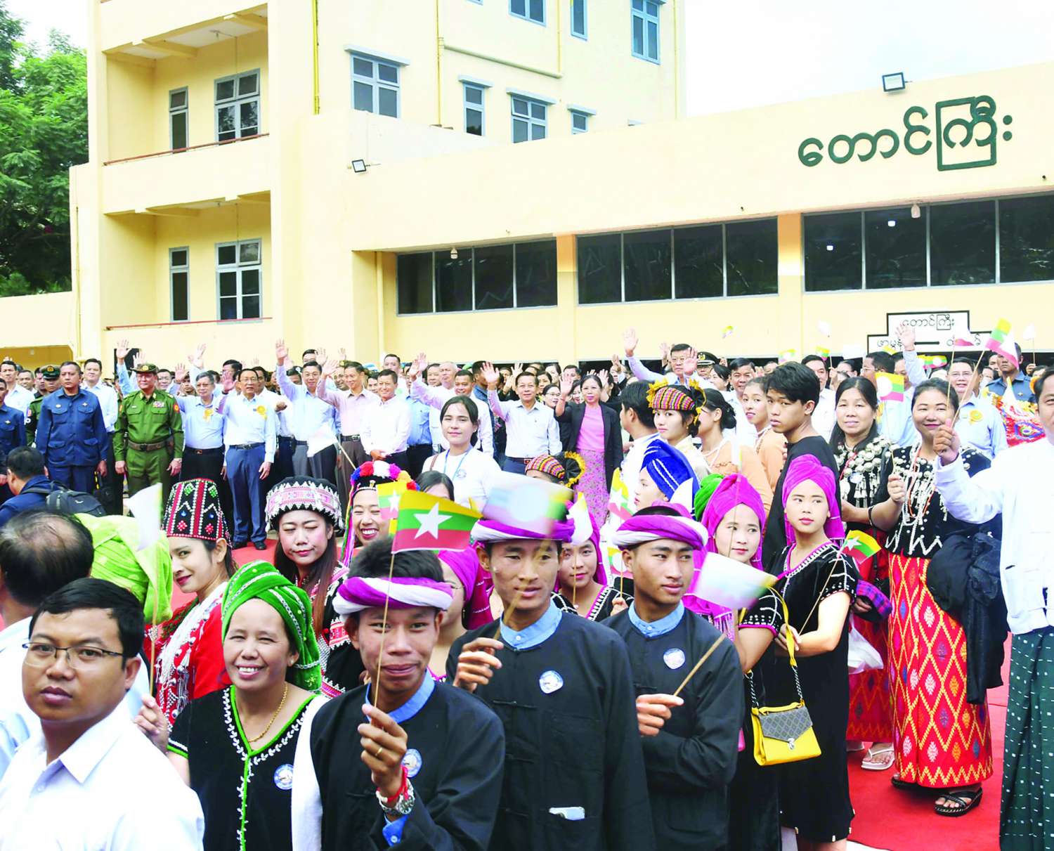 အဆိုပါအခမ်းအနားသို့ နိုင်ငံတော်စီမံအုပ်ချုပ်ရေးကောင်စီဥက္ကဋ္ဌ နိုင်ငံတော်ဝန်ကြီးချုပ်နှင့်အတူ ဇနီး ဒေါ်ကြူကြူလှ၊ ကောင်စီတွဲဖက်အတွင်းရေးမှူးနှင့် ဇနီး၊ ကောင်စီဝင်များနှင့် ဇနီးများ၊ ပြည်ထောင်စုဝန်ကြီးများနှင့် ဇနီးများ၊ ရှမ်းပြည်နယ်ဝန်ကြီးချုပ်၊ ကာကွယ်ရေးဦးစီးချုပ်ရုံးမှ အဆင့်မြင့်တပ်မတော်အရာရှိကြီးများ၊ အရှေ့ပိုင်းတိုင်းစစ်ဌာနချုပ် တိုင်းမှူး၊ ပြည်နယ်အဆင့် ဌာနဆိုင်ရာ တာဝန်ရှိသူများ၊ ဖိတ်ကြားထားသည့် ဧည့်သည်တော်များ၊ ဒေသခံတိုင်းရင်းသား ပြည်သူများ တက်ရောက်ကြသည်။