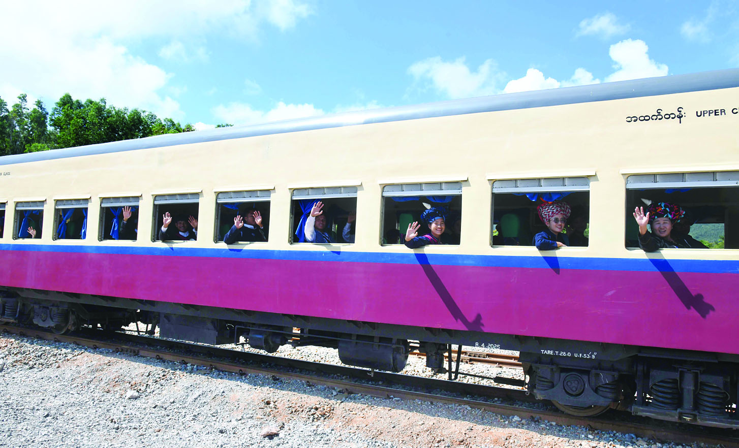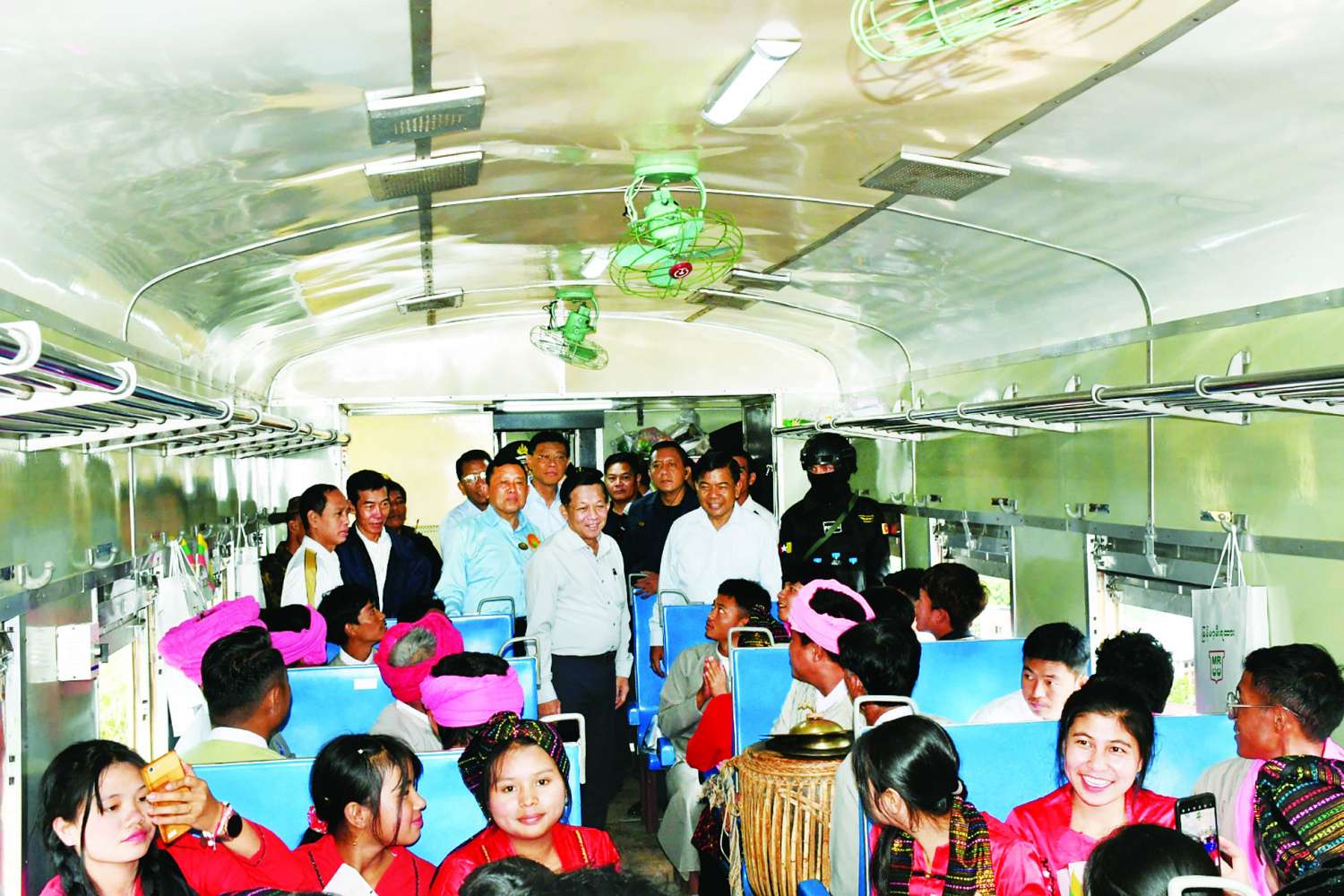 ထိုသို့ စီးနင်းလိုက်ပါစဉ် နိုင်ငံတော်စီမံအုပ်ချုပ်ရေးကောင်စီဥက္ကဋ္ဌ နိုင်ငံတော်ဝန်ကြီးချုပ်နှင့် အဖွဲ့ဝင်များသည် ရထားပေါ်တွင် စီးနင်းလိုက်ပါလာသည့် ပြည်နယ်အဆင့် ဌာနဆိုင်ရာဝန်ထမ်းများ၊ ဒေသခံတိုင်းရင်းသားပြည်သူများအား ရင်းရင်းနှီးနှီး လိုက်လံနှုတ်ဆက်ကြပြီး ဒေသခံတိုင်းရင်းသားများက အိုးစည် ဗုံမောင်းများ တီးမှုတ်၍ ဂါရဝပြုပြန်လည်နှုတ်ဆက်ကြသည်။ ထို့ပြင် မြန်မာ့မီးရထားမှ ဝန်ထမ်းများကလည်း ရထားပေါ်တွင် စီးနင်းလိုက်ပါလာသည့် ပြည်နယ်အဆင့် ဌာနဆိုင်ရာဝန်ထမ်းများ၊ ဒေသခံတိုင်းရင်းသားပြည်သူများအား အမှတ်တရလက်ဆောင်ပစ္စည်းများ ပေးအပ်ပြီး စားသောက်ဖွယ်ရာများနှင့် တည်ခင်းဧည့်ခံသည်။