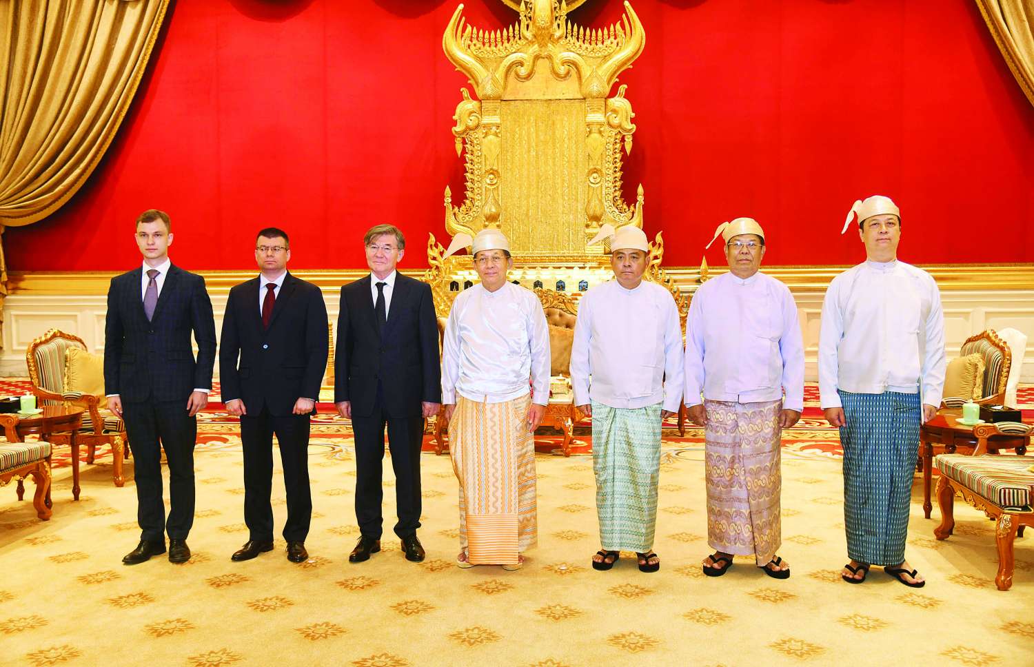 တွေ့ဆုံပွဲအပြီးတွင် နိုင်ငံတော်စီမံအုပ်ချုပ်ရေးကောင်စီဥက္ကဋ္ဌ နိုင်ငံတော်ဝန်ကြီးချုပ်နှင့် မြန်မာနိုင်ငံဆိုင်ရာ ရုရှားဖက်ဒရေးရှင်းနိုင်ငံ သံအမတ်ကြီးတို့သည် စုပေါင်းမှတ်တမ်းတင် ဓာတ်ပုံရိုက်ကြသည်။
