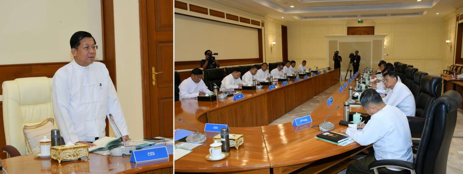 နိုင်ငံတော်စီမံအုပ်ချုပ်ရေးကောင်စီအစည်းအဝေး(၅/၂၀၂၃)ကို ယနေ့နံနက်ပိုင်းတွင် နေပြည်တော်ရှိ နိုင်ငံတော်စီမံအုပ်ချုပ်ရေးကောင်စီဥက္ကဋ္ဌရုံး အစည်းအဝေးခန်းမ၌ ကျင်းပပြုလုပ်ရာ နိုင်ငံတော်စီမံအုပ်ချုပ်ရေးကောင်စီဥက္ကဋ္ဌ နိုင်ငံတော်ဝန်ကြီးချုပ် ဗိုလ်ချုပ်မှူးကြီးမင်းအောင်လှိုင် တက်ရောက်အမှာစကားပြောကြားသည်။