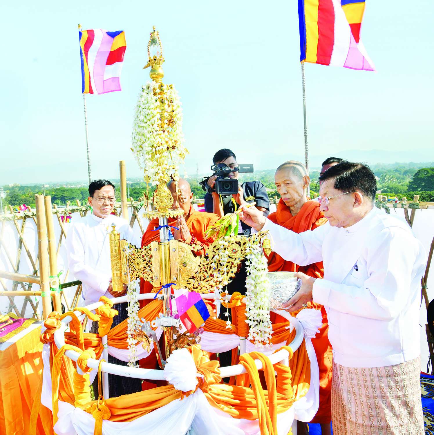 နေပြည်တော် ပျဉ်းမနားမြို့ မြို့တော်ထိပ်ပန် မင်္ဂလာစေတီတော် အထက်ဌာပနာသွင်း၊ ရွှေထီးတော်တင်နှင့် ဗုဒ္ဓါဘိသေက အနေကဇာတင် မဟာမင်္ဂလာအခမ်းအနားကျင်းပ