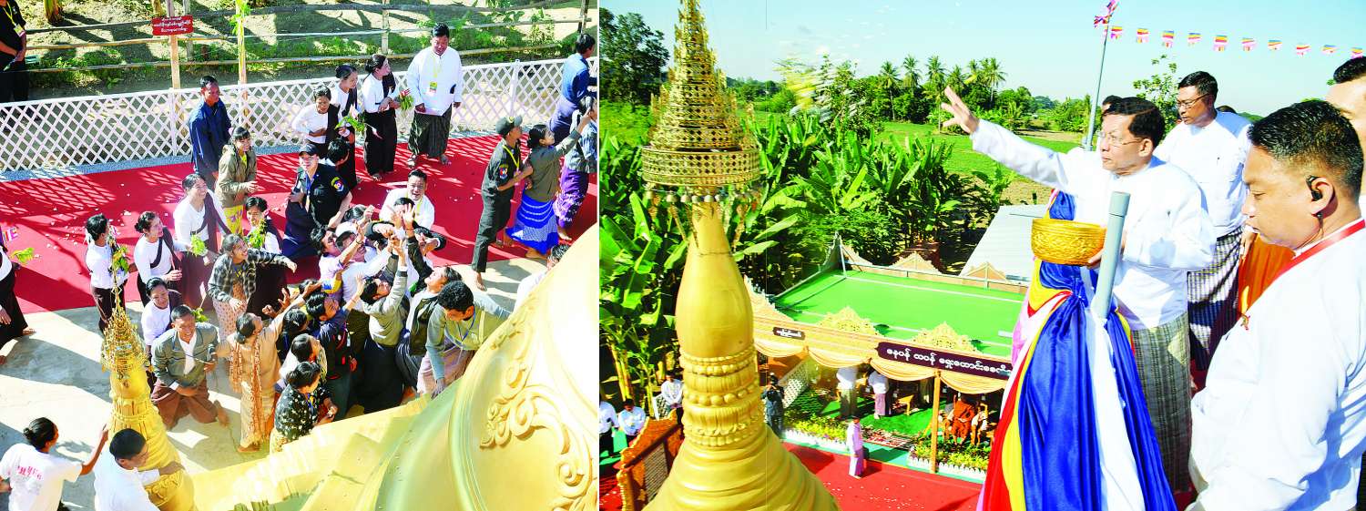 ယင်းနောက် နိုင်ငံတော်စီမံအုပ်ချုပ်ရေးကောင်စီဥက္ကဋ္ဌ နိုင်ငံတော်ဝန်ကြီးချုပ်နှင့်ဇနီးတို့က မဟာမင်္ဂလာအခမ်းအနား အောင်မြင်ခြင်းအထိမ်းအမှတ်အဖြစ် ရတနာ ရွှေမိုး၊ ငွေမိုးများ ရွာသွန်းဖြိုးကြသည်။