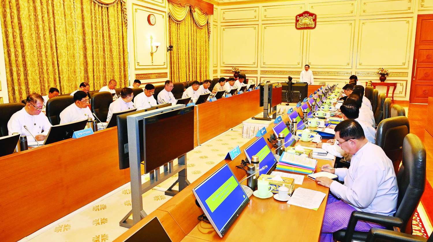 ထို့နောက် အစည်းအဝေးတက်ရောက်လာကြသည့် နိုင်ငံတော်စီမံ အုပ်ချုပ်ရေးကောင်စီတွဲဖက်အတွင်းရေးမှူး၊ နိုင်ငံတော်စီမံအုပ်ချုပ်ရေး ကောင်စီအဖွဲ့ဝင်များ၊ ပြည်ထောင်စုဝန်ကြီးများက သက်ဆိုင်ရာကဏ္ဍရပ်များနှင့် လုံခြုံရေး၊ တည်ငြိမ်အေးချမ်းရေးနှင့် တရားဥပဒေစိုးမိုးရေးဆိုင်ရာကိစ္စရပ်များကို ရှင်းလင်းတင်ပြကြသည်။