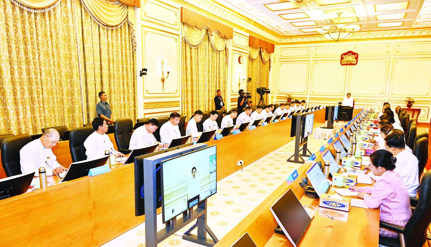 ယင်းနောက် အစည်းအဝေးသို့ တက်ရောက်လာကြသည့် ပြည်ထောင်စုဝန်ကြီးများက သက်ဆိုင်ရာ ကဏ္ဍအလိုက် ရှင်းလင်းတင်ပြကြသည်။