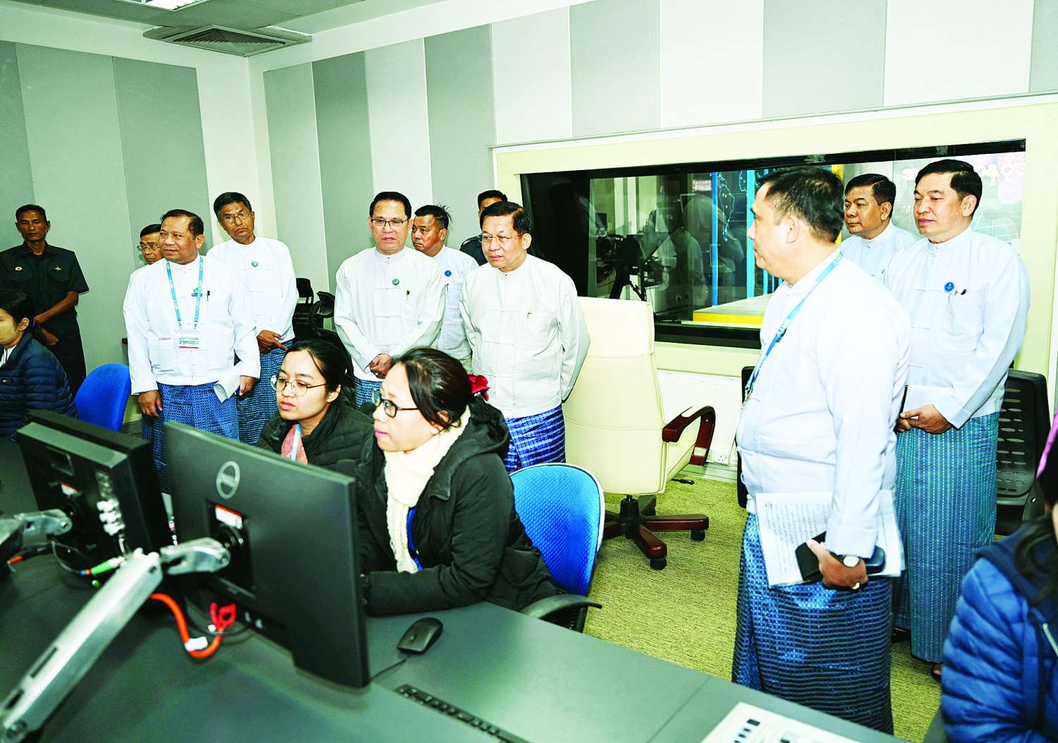 ဦးစွာ နိုင်ငံတော်စီမံအုပ်ချုပ်ရေးကောင်စီဥက္ကဋ္ဌ နိုင်ငံတော်ဝန်ကြီးချုပ်နှင့် အဖွဲ့ဝင်များအား ပြန်ကြားရေးဝန်ကြီးဌာန ပြည်ထောင်စုဝန်ကြီး ဦးမောင်မောင်အုန်းနှင့်အဖွဲ့ဝင်များ၊ မြန်မာ့အသံနှင့် ရုပ်မြင်သံကြားမှ တာဝန်ရှိသူများ၊ မြန်မာ့အသံနှင့်ရုပ်မြင်သံကြား၊ တိုင်းရင်းသားလူမျိုးများရုပ်သံလိုင်းမှ တိုင်းရင်းသားဝန်ထမ်းများက လှိုက်လှဲနွေးထွေးစွာ ကြိုဆိုနှုတ်ဆက်ကြသည်။