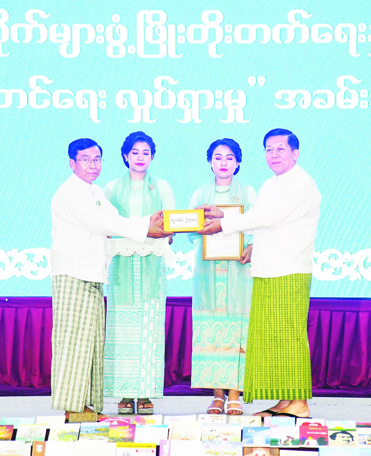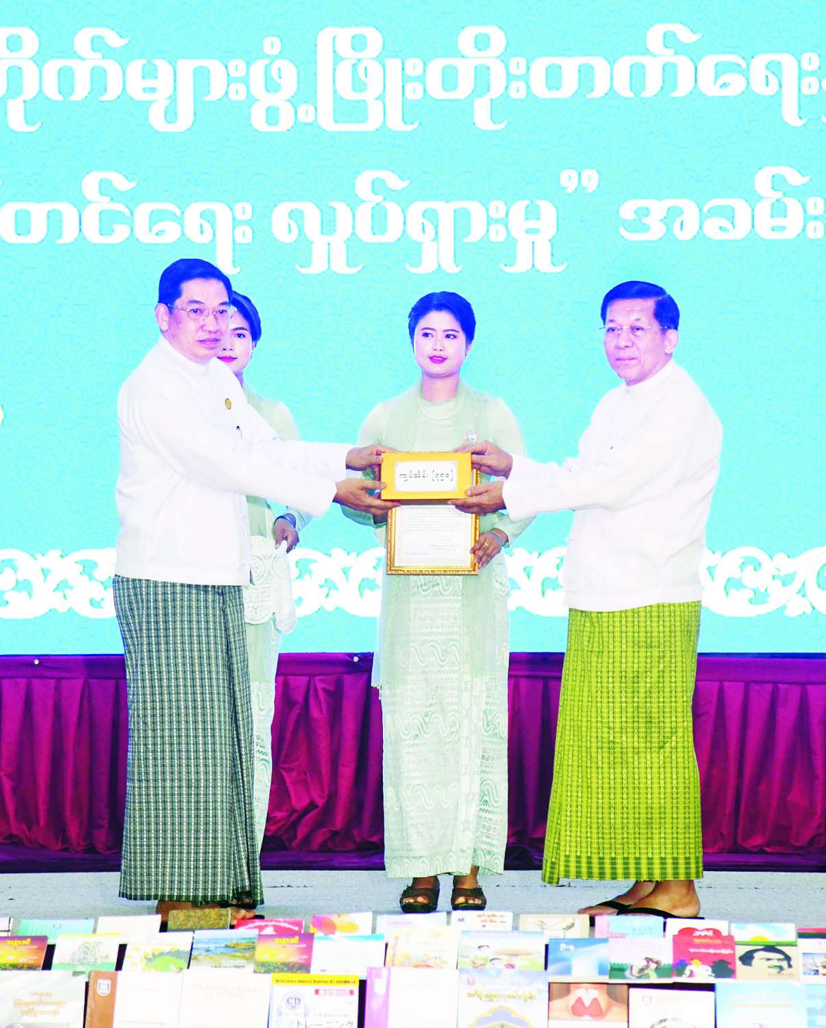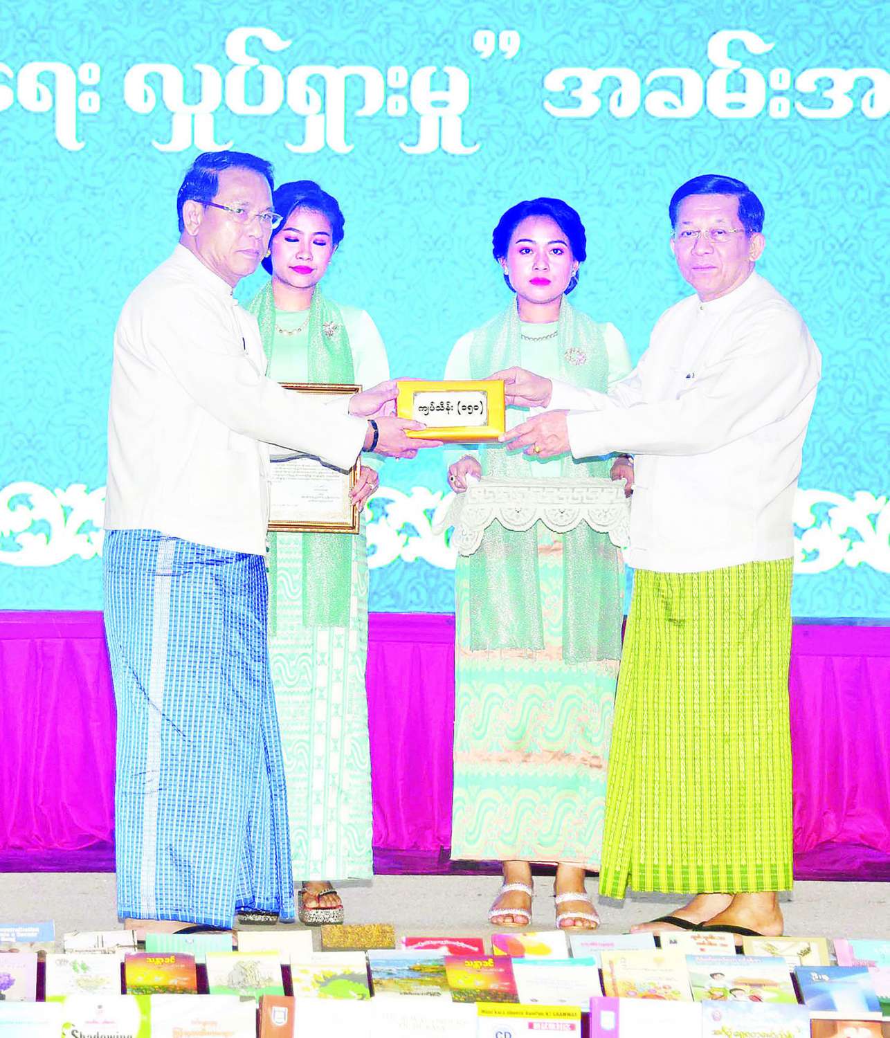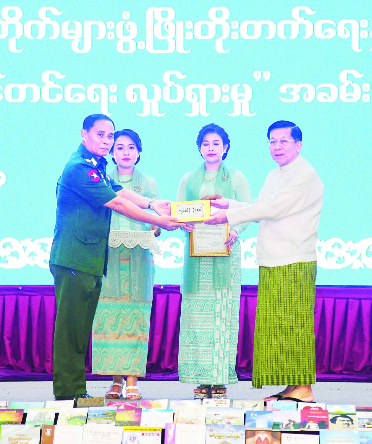 ယင်းနောက် ပြည်ထောင်စုနယ်မြေ နေပြည်တော်အတွင်းရှိ စာကြည့်တိုက်လေးတိုက် ပြန်လည်ပြင်ဆင်ဖွင့်လှစ်နိုင်ရန်အတွက် ငွေကျပ်သိန်း ၂၀၀ နှင့် စာကြည့်တိုက် သုံးတိုက် အသစ်တည်ဆောက်ဖွင့်လှစ်နိုင်ရန်အတွက် ငွေကျပ်သိန်း ၄၅၀၊ စုစုပေါင်း ငွေကျပ်သိန်း ၆၅၀ နှင့် ပြည်သူများ စာပေဖတ်ရှုလေ့လာနိုင်ရန်အတွက် စာအုပ်စာစောင် ၃၀၀၀ ကို နိုင်ငံတော်စီမံအုပ်ချုပ်ရေးကောင်စီဥက္ကဋ္ဌ နိုင်ငံတော်ဝန်ကြီးချုပ်က ထောက်ပံ့ပေးအပ်ရာ နေပြည်တော်ကောင်စီဥက္ကဋ္ဌက လက်ခံရယူသည်။