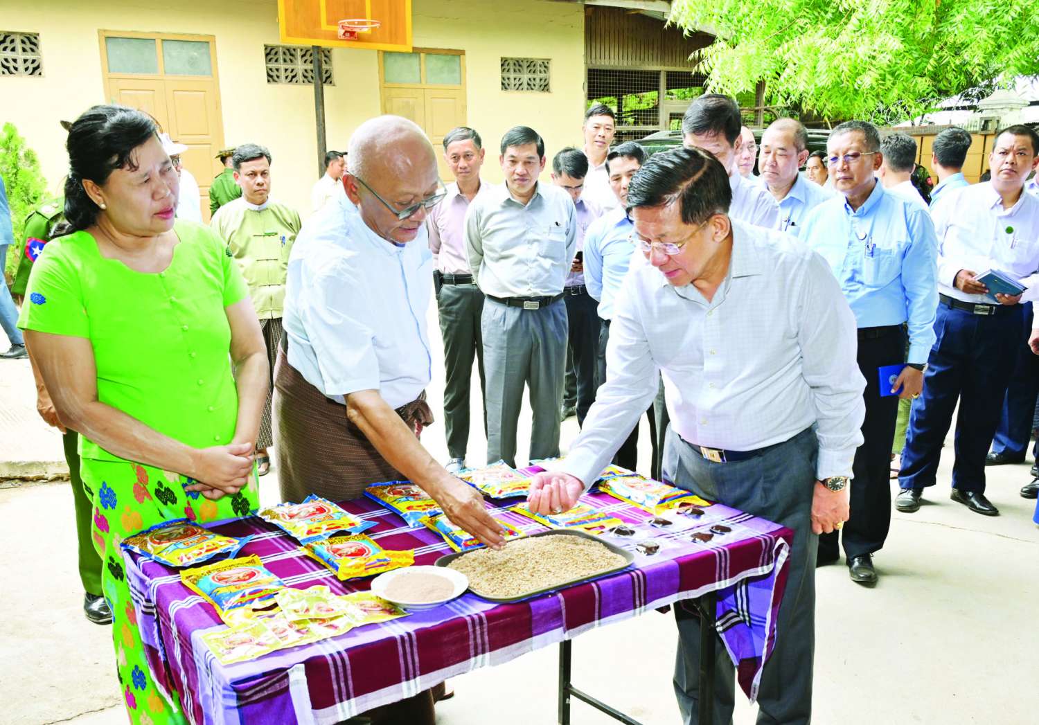 ထို့နောက် နိုင်ငံတော်စီမံအုပ်ချုပ်ရေးကောင်စီဥက္ကဋ္ဌ နိုင်ငံတော်ဝန်ကြီးချုပ်နှင့်အဖွဲ့ဝင်များသည် ညောင်ဦးမြို့၊ သီရိမင်္ဂလာရပ်ကွက်ရှိ မြင်းပျံပုန်းရည်ကြီးထုတ်လုပ် မှုလုပ်ငန်းသို့ သွားရောက်လေ့လာကြည့်ရှုကြရာ လုပ်ငန်းရှင်ဦးခင်မောင်ဝင်းနှင့် ဒေါ်ခင်စောဝေတို့က ပုန်းရည်ကြီးထုတ်လုပ်မှုအဆင့်ဆင့်အား လိုက်လံရှင်းလင်းပြသသည်။ ရှင်းလင်းပြသမှုများအပေါ် နိုင်ငံတော်စီမံအုပ်ချုပ်ရေးကောင်စီဥက္ကဋ္ဌ နိုင်ငံတော်ဝန်ကြီးချုပ်က ယခုကဲ့သို့ ဒေသထုတ်ကုန်လုပ်ငန်းအောင်မြင်မှုများကို တွေ့ရသည့်အတွက် ဝမ်းသာမိပါကြောင်းနှင့် လုပ်ငန်းပိုမိုတိုးချဲ့ဖွံ့ဖြိုးအောင် ဆက်လက်ဆောင်ရွက်သွားရန်လိုကြောင်း၊ စက်ရုံအတွင်းလုပ်ငန်းဆောင်ရွက်မှုများအား သန့်ရှင်းသပ်ရပ်မှုရှိရေးနှင့် ကျန်းမာရေးနှင့်ညီညွတ်မှုရှိရေးကိုလည်း အလေးထားဆောင်ရွက်သွားရန်လိုကြောင်းဖြင့် ဆွေးနွေးပြောကြားကာ ရင်းရင်းနှီးနှီးနှုတ်ဆက်ခဲ့ကြောင်း သတင်းရရှိသည်။