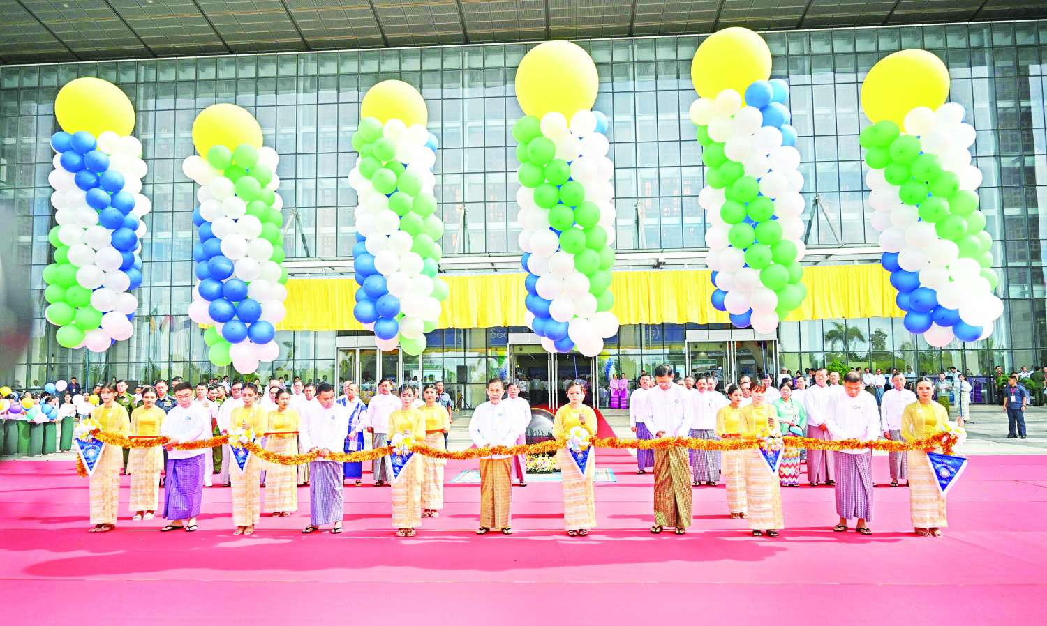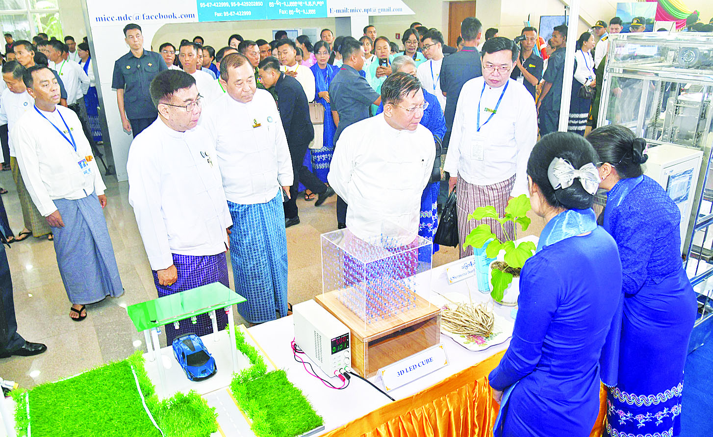 ဦးစွာ မြန်မာနိုင်ငံလုံးဆိုင်ရာ ပညာရေးညီလာခံ(၂၀၂၄) ကျင်းပရေးဦးစီးကော်မတီဥက္ကဋ္ဌ၊ နိုင်ငံတော်စီမံအုပ်ချုပ်ရေးကောင်စီ ဒုတိယဥက္ကဋ္ဌ ဒုတိယဝန်ကြီးချုပ် ဒုတိယဗိုလ်ချုပ်မှူးကြီး စိုးဝင်း၊ ကောင်စီတွဲဖက်အတွင်းရေးမှူး ဒုတိယဗိုလ်ချုပ်ကြီး ရဲဝင်းဦး၊ ကောင်စီဝင် ဗိုလ်ချုပ်ကြီး မြထွန်းဦး၊ ပညာရေးဝန်ကြီးဌာန ပြည်ထောင်စုဝန်ကြီး ဒေါက်တာညွန့်ဖေနှင့် သိပ္ပံနှင့်နည်းပညာဝန်ကြီးဌာန၊ ပြည်ထောင်စုဝန်ကြီး ဒေါက်တာမျိုးသိန်းကျော်တို့က အခမ်းအနားကို ဖဲကြိုးဖြတ်ဖွင့်လှစ်ပေးကြသည်။